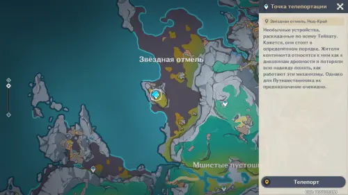 Больше всего ягод за один маршрут можно собрать на Звездной отмели. Переместитесь к точке телепортации на скриншоте выше и спуститесь вниз. Затем немного пройдите на восток: там вы найдете 5 ягодных кустов.
