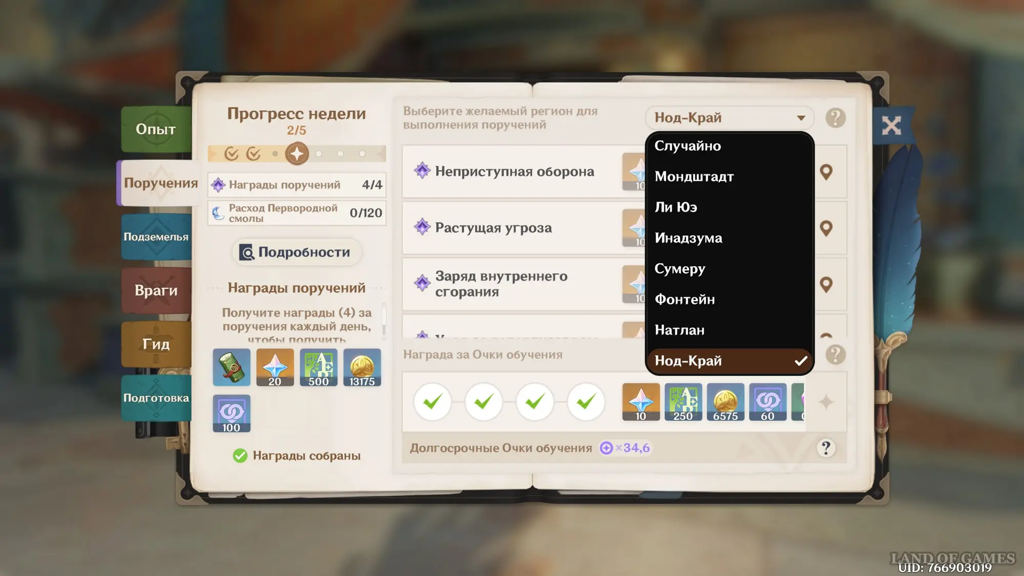 Задания и поручения Нод-Края