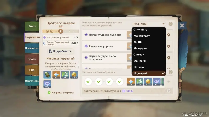 Не стоит забывать и о поручениях, представляющих собой сравнительно небольшие ежедневные задания, позволяющие заработать немного моры, камней истока, очков приключений и прочих ценных предметов, включая ключи легенд. Некоторые из них даже требуются для открытия секретных мировых квестов и достижений в этом регионе. Ознакомиться с их списком можно в отдельной статье.