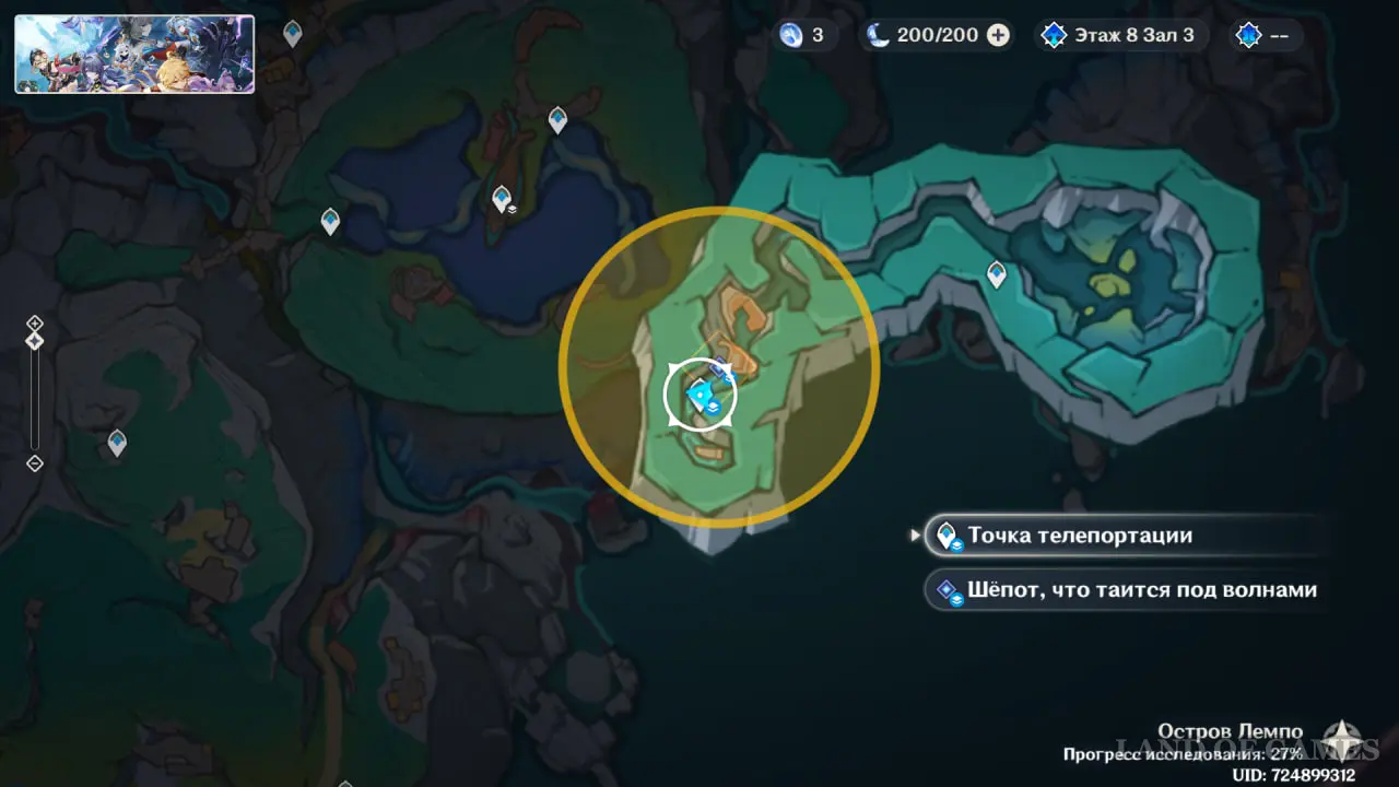 Следующий телепорт связан с миссией «Шепот, что таится под волнами» и открывается вскоре после начала квеста. Вам необходимо попасть в пещеру под разбитым кораблем, используя силу куухенки.