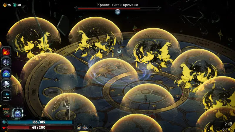 Вместо одного купола, как в первой фазе, Кронос покрывает ими практически все поле боя. Если Мелиноя попадет под них, она застынет, так что нужно как можно быстрее занять безопасное место.