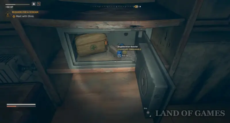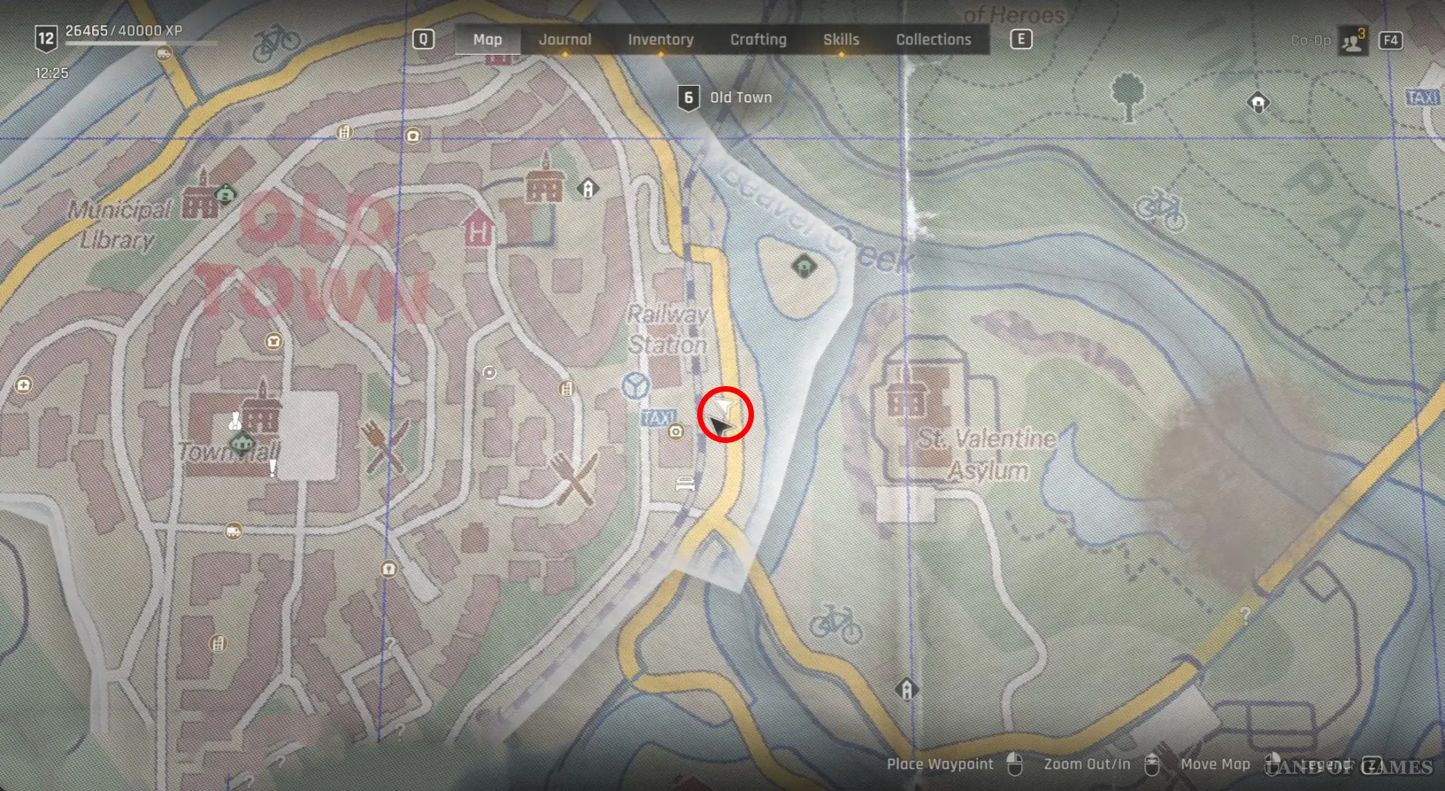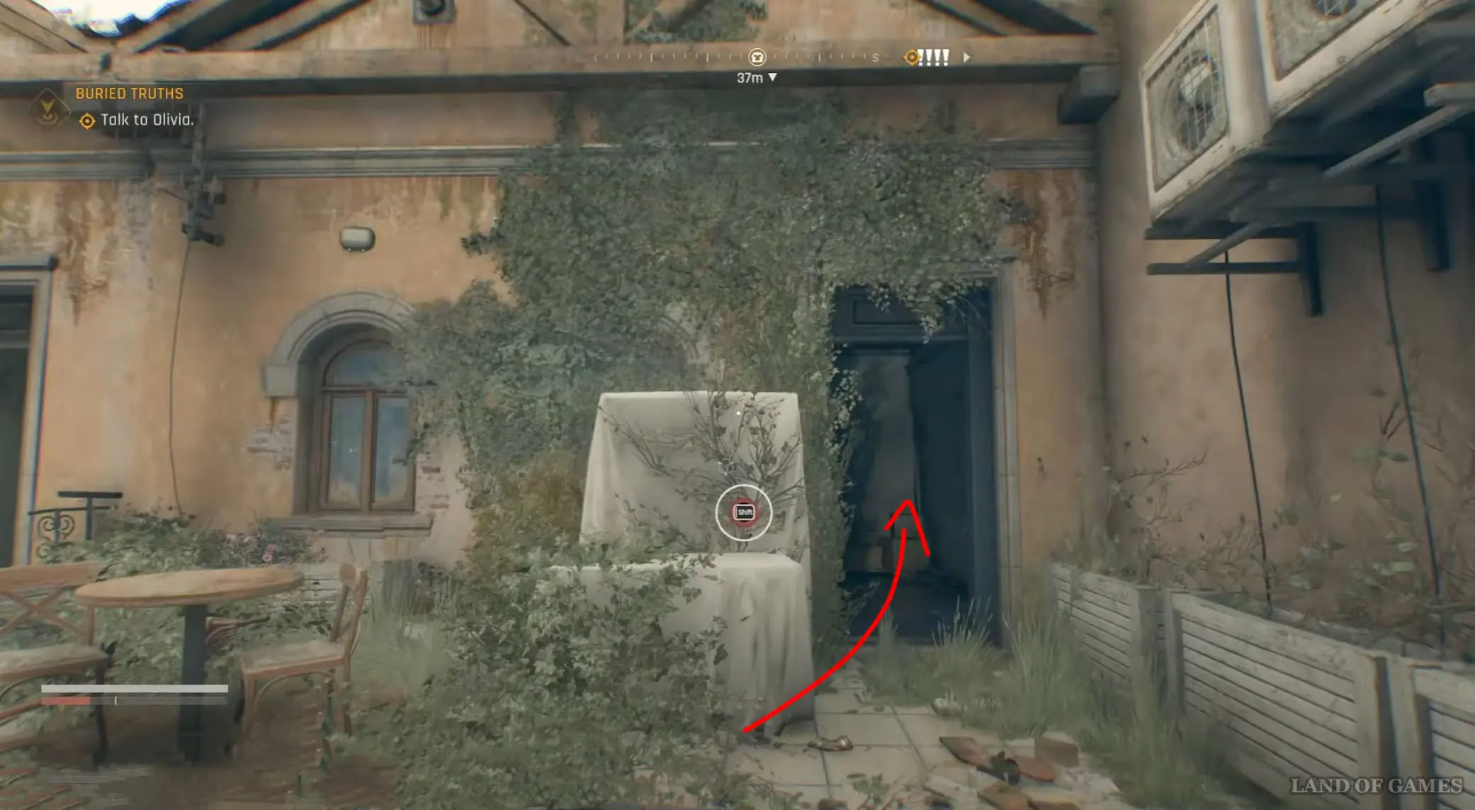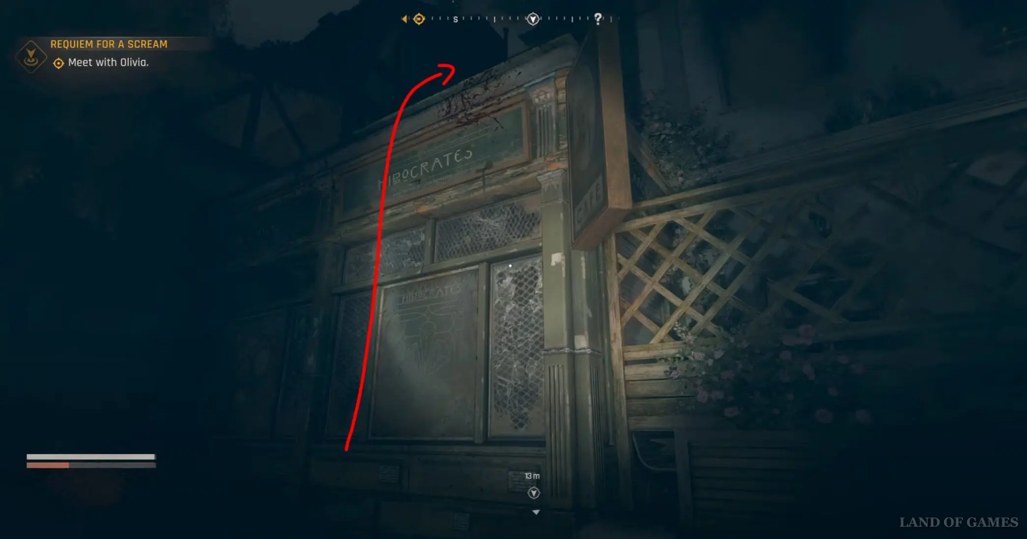 Переместитесь к путевой точке, расположенной к юго-западу от ж/д станции, а затем заберитесь на крышу кафе с вывеской «Hipocrates», пройдите немного вперед, и справа вы обнаружите доску, закрывающую проход в здание. Отодвинув препятствие, взломайте очень легкий замок на двери и войдите внутрь. Сделайте несколько шагов, и с правой стороны на полке вы увидите сейф.
