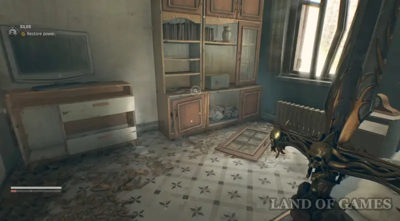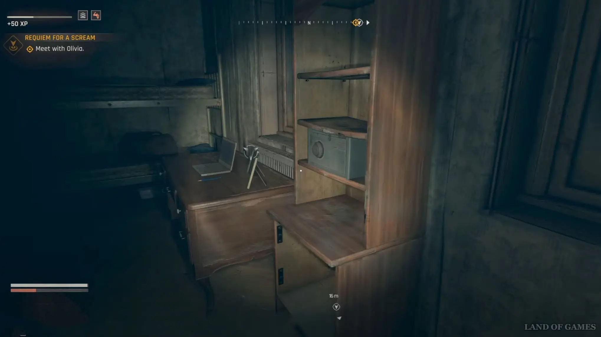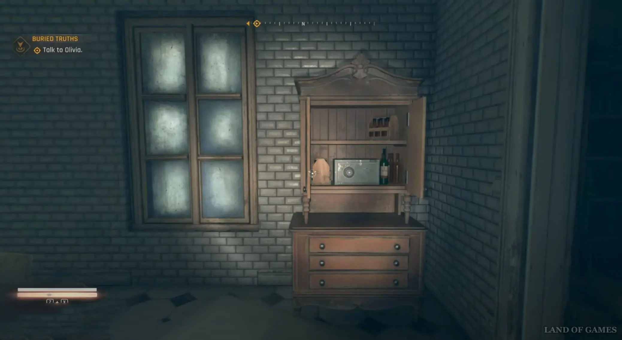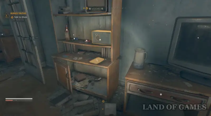 Затем поверните вправо и спуститесь через отверстие на нижний этаж. Идите по коридору, сверните вправо и войдите в гостиную, а затем сразу же развернитесь, и вы увидите сейф рядом с радиоприемником. Введите в него код 11-24-32 и заберите из тайника дорогой парфюм.