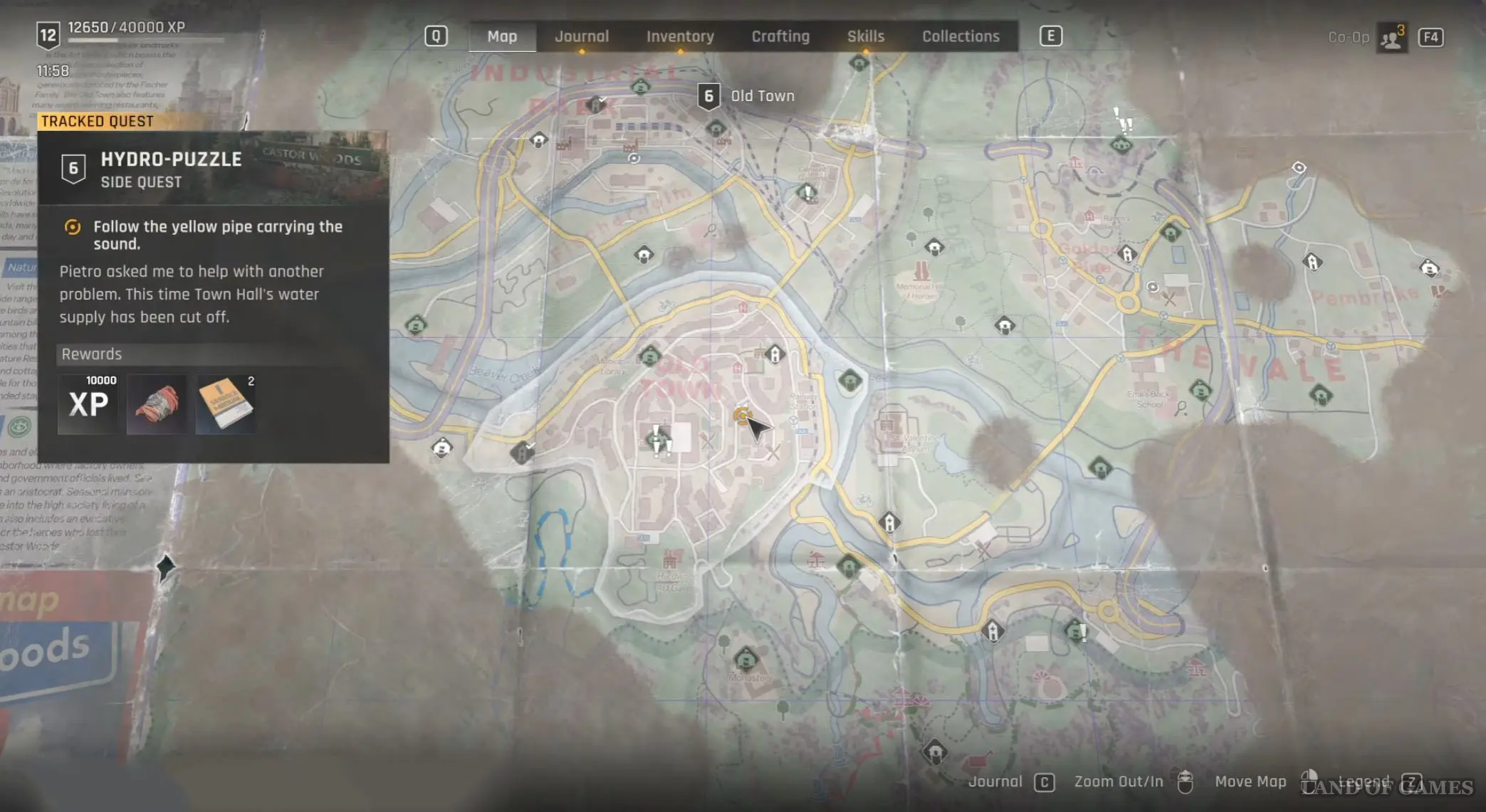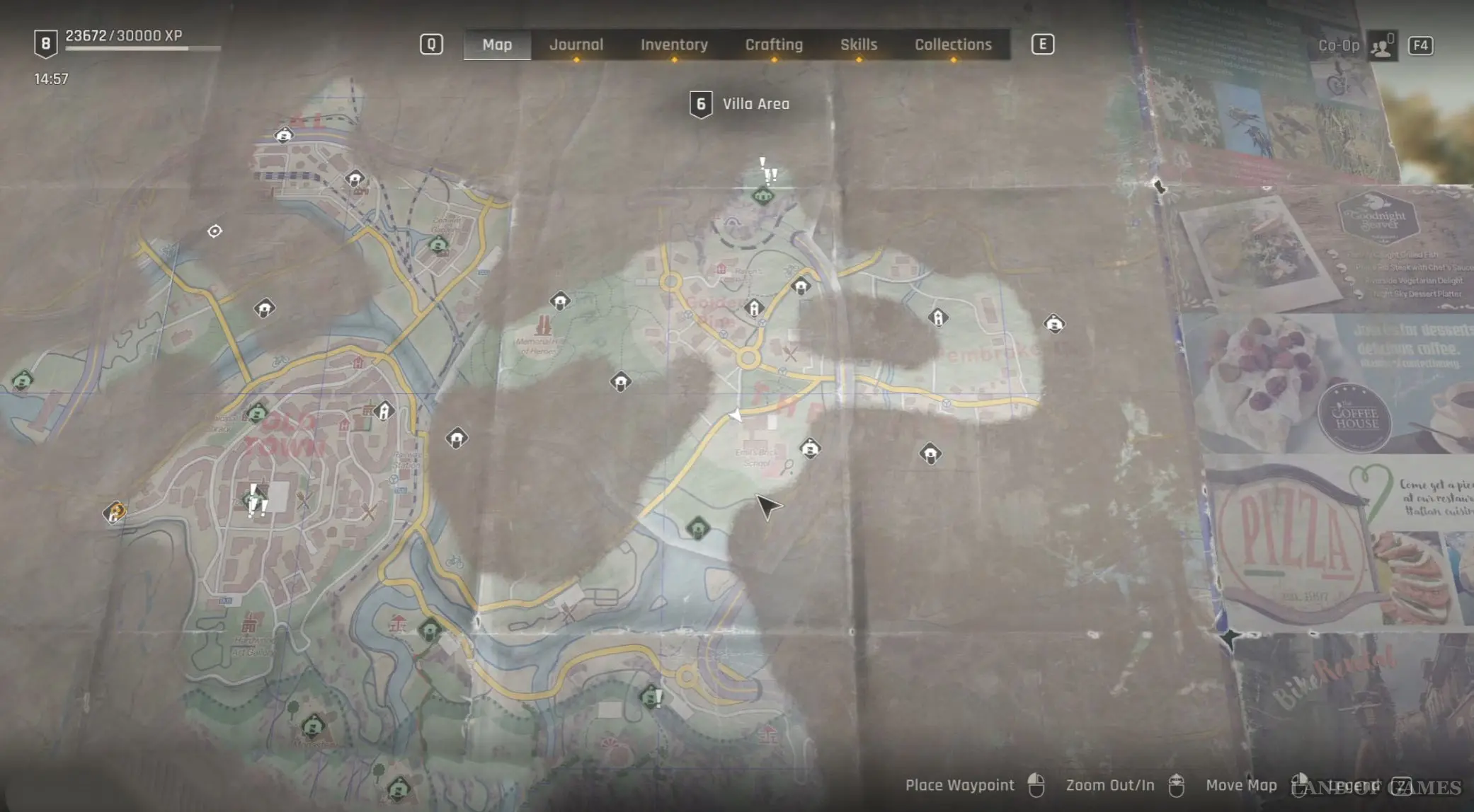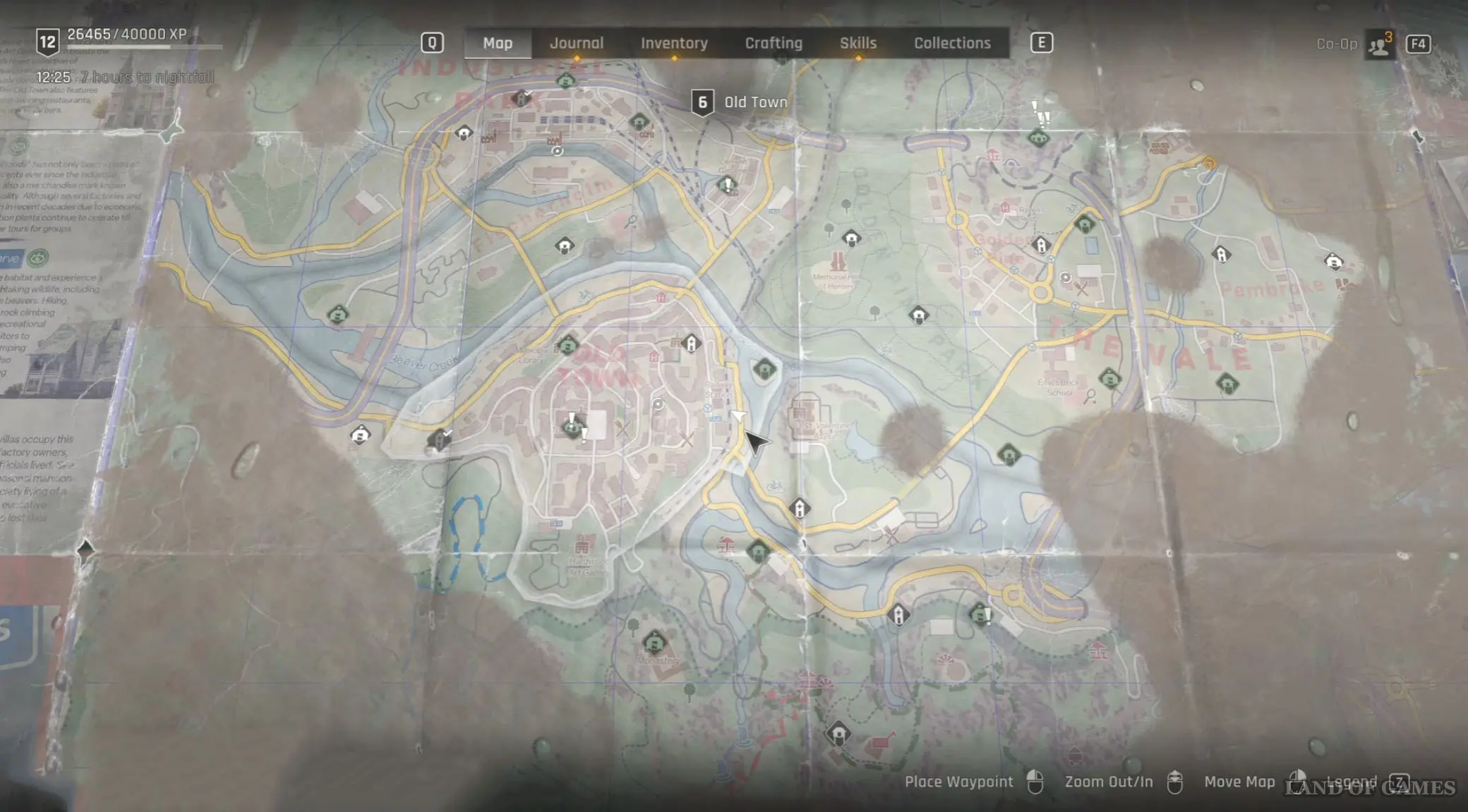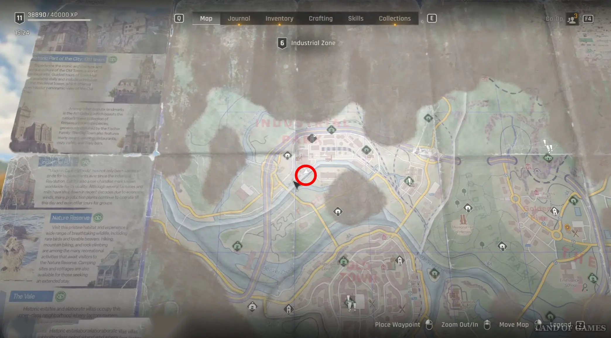 Отправляйтесь на север указанной области и отыщите здание, отмеченное на карте буков «H» – речь идет о гостинице «Оранж». Затем заберитесь на крышу отеля и пройдите внутрь через открытое окно. Поверните направо и спрыгните в отверстие. Войдите в комнату слева, чтобы найти записку с первой подсказкой. Вторая подсказка расположена неподалеку от прохода в магазин в темной зоне.