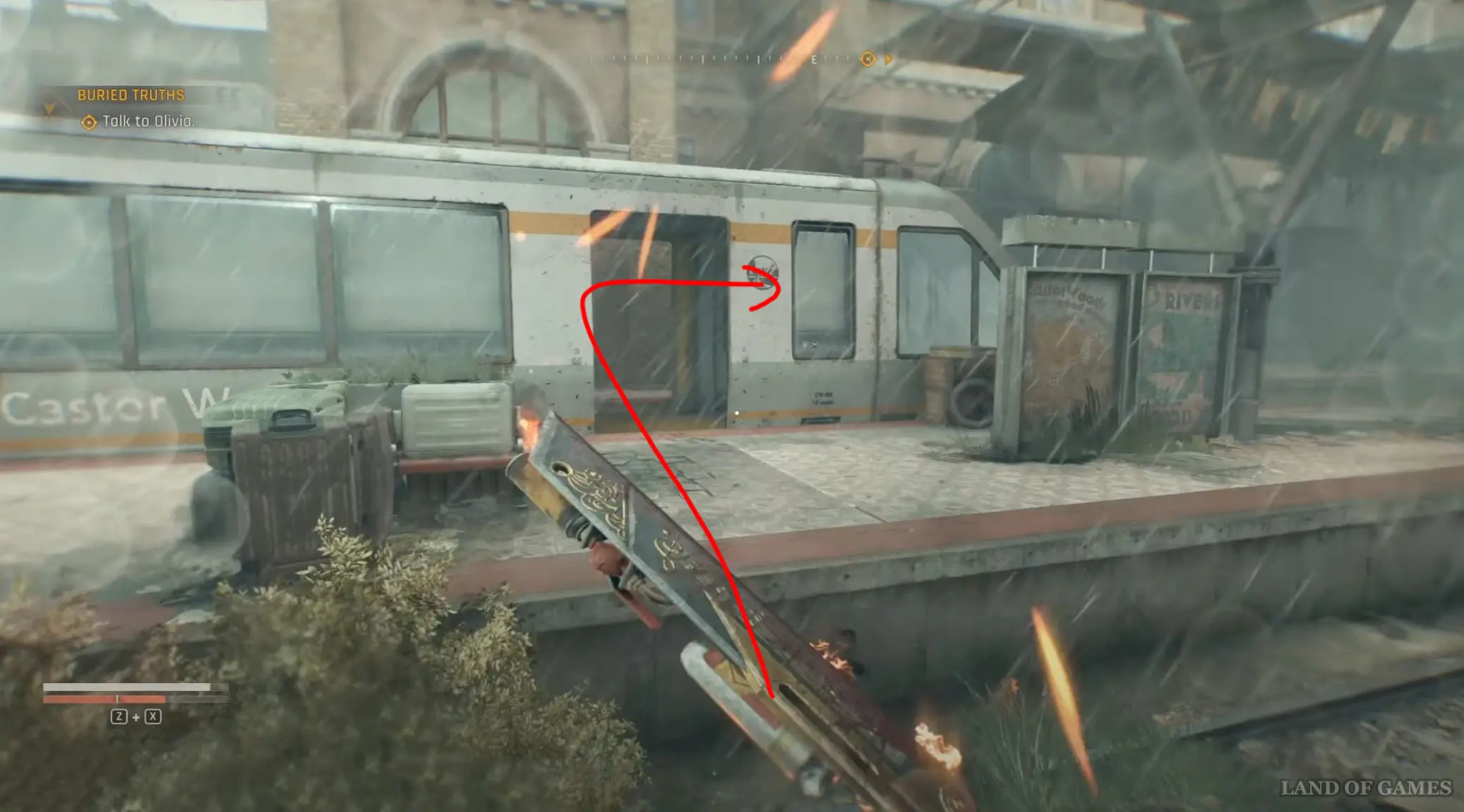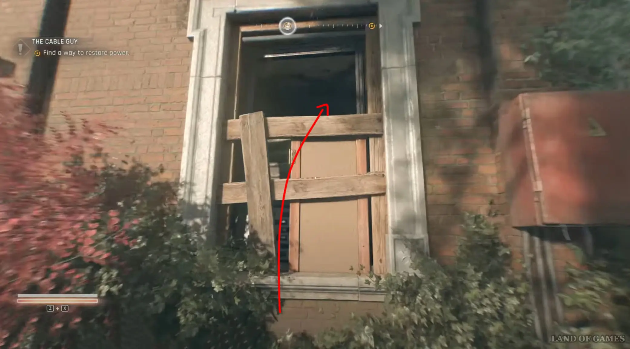 От здания городской Мэрии двигайтесь на восток и отыщите здесь заброшенную постройку. Войдите внутрь и пройдите через него на противоположную сторону. Выберитесь из открытого окошка в спальне и поверните направо. Начните идти по крыльцу вперед, а потом перепрыгните на дом слева.