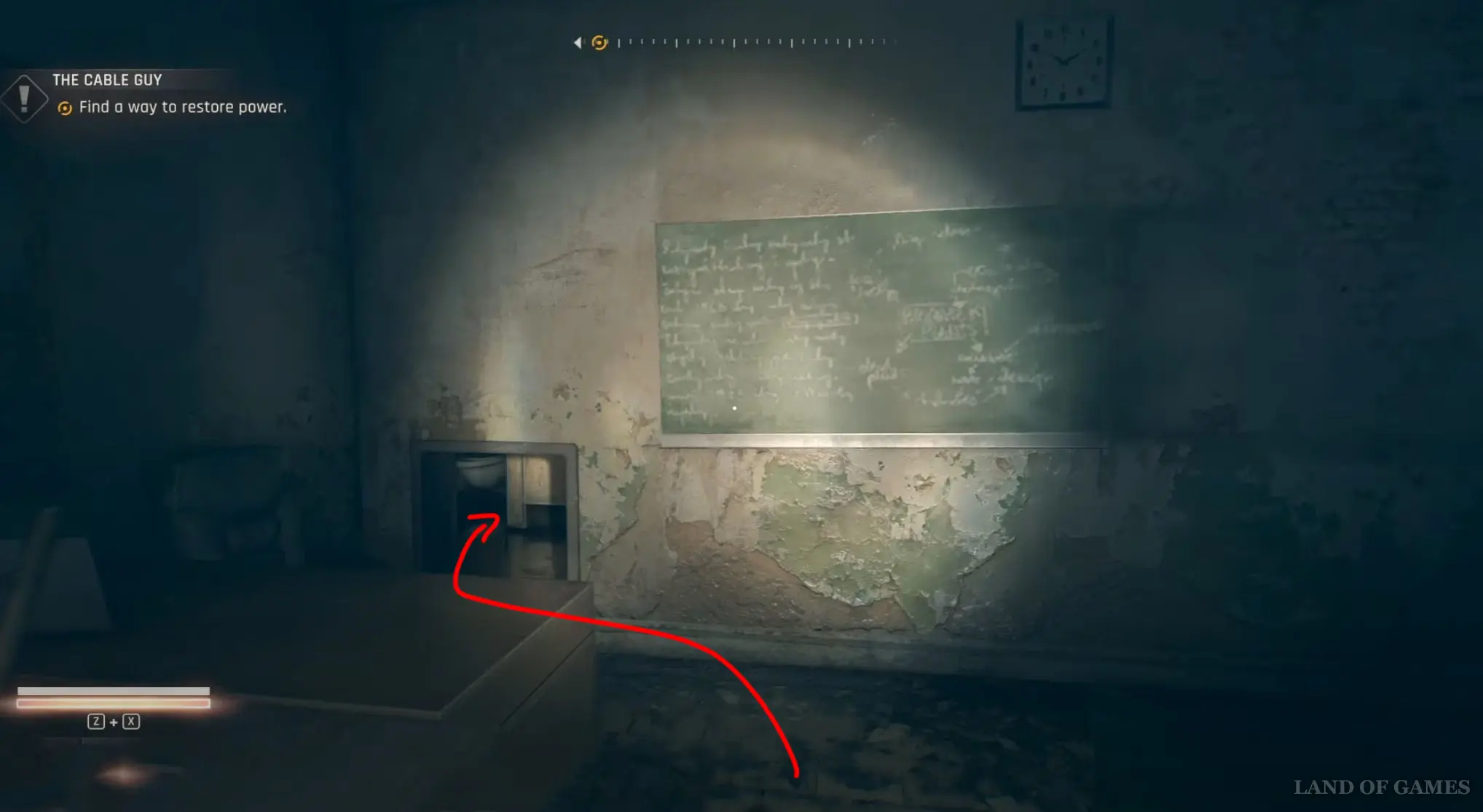 Отправляйтесь в южную часть локации и подойдите к дому с южной стороны, а затем начните забираться на него и войдите в него через открытое окно на втором этаже. Оказавшись внутри, пройдите в комнату на противоположной стороне и отыщите записку с подсказкой (здесь нужно решить уравнение).