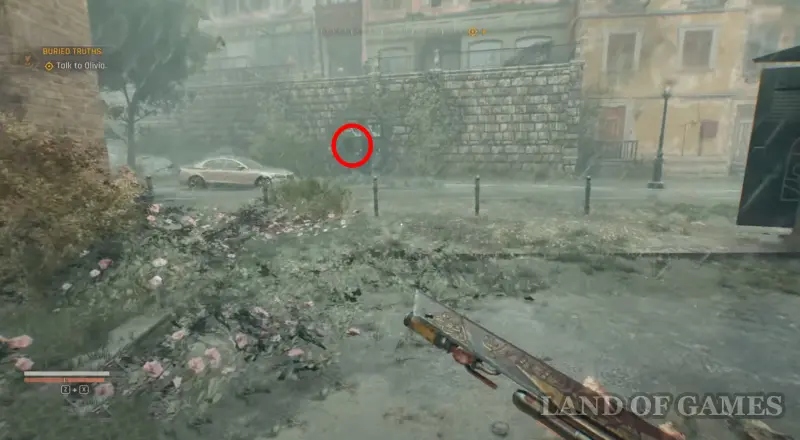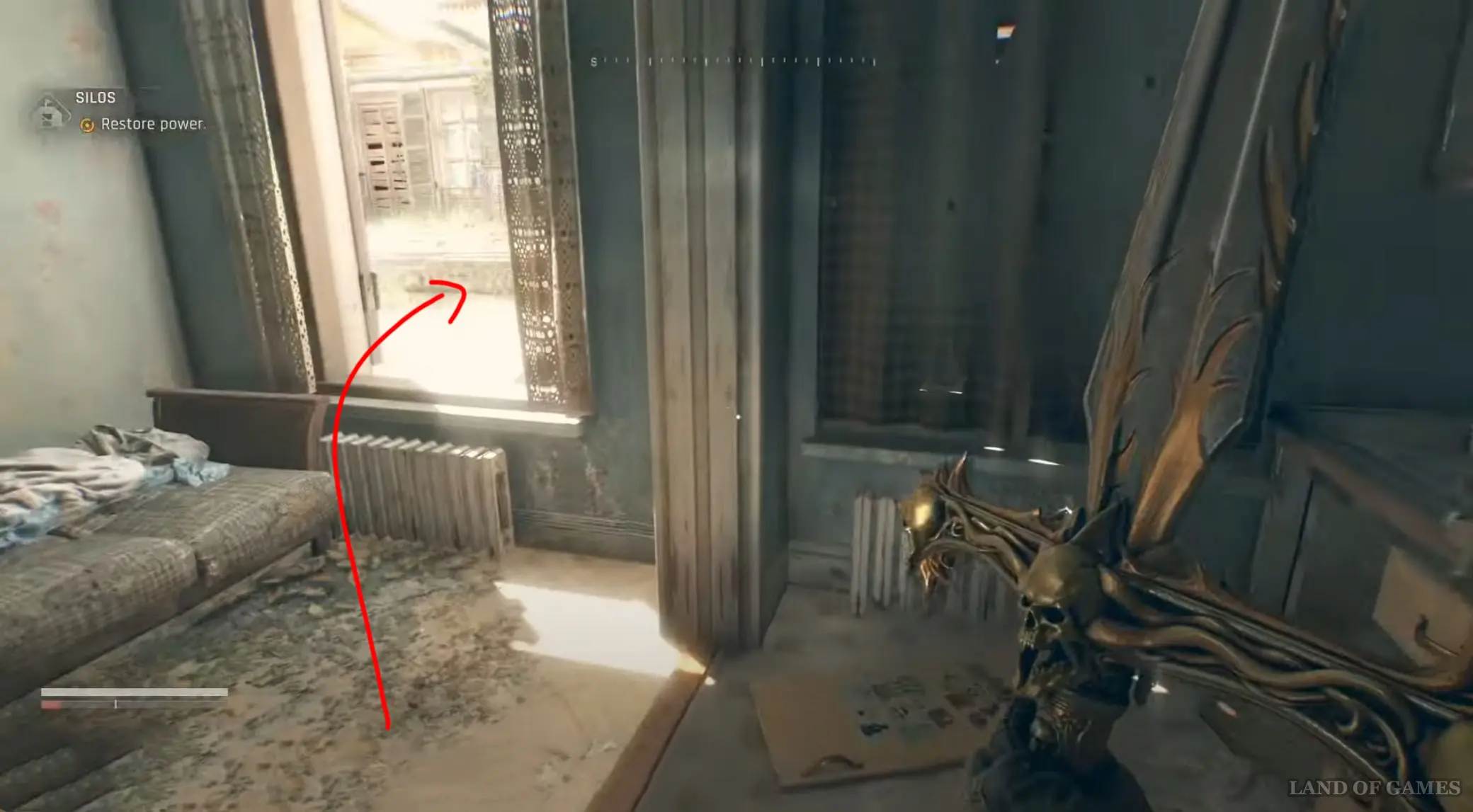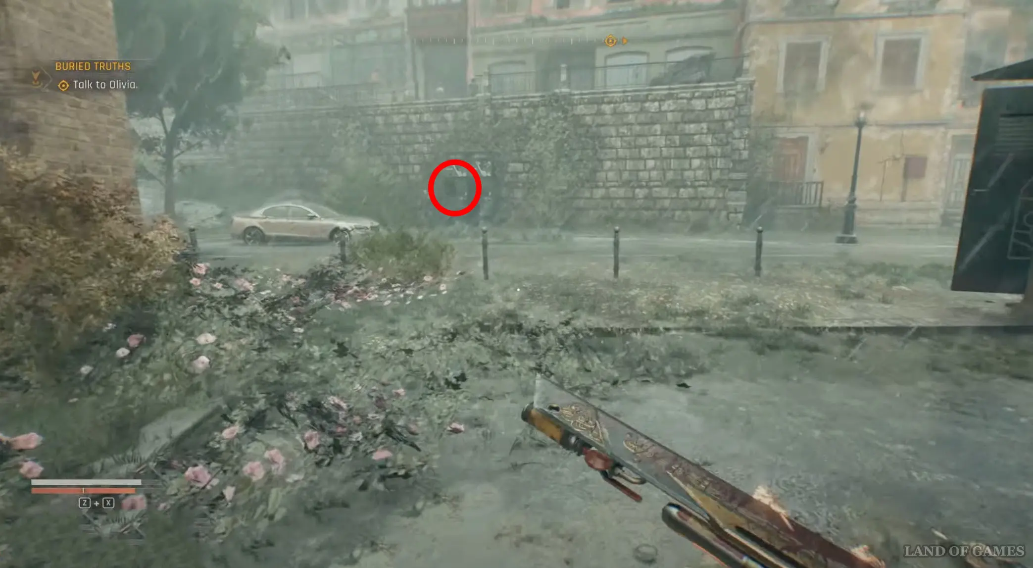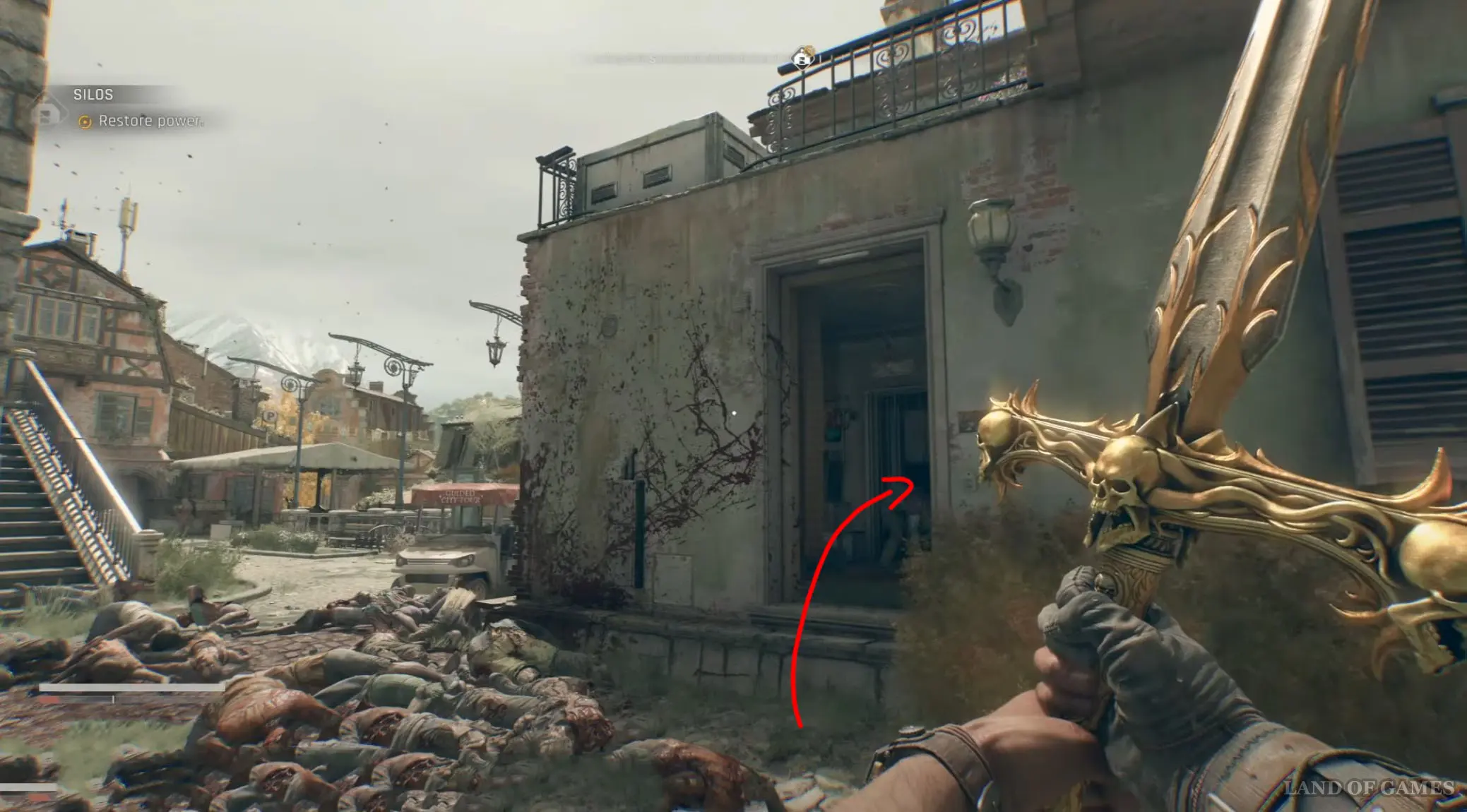 Идите в юго-восточную часть указанной области, где расположена высокая каменная башня, и заберитесь на крышу дома, стоящего прямо напротив нее. Войдите внутрь здания, пройдя через разбитое окно, а затем прочтите записку рядом с трупом, где указана подсказка к правильной комбинации.