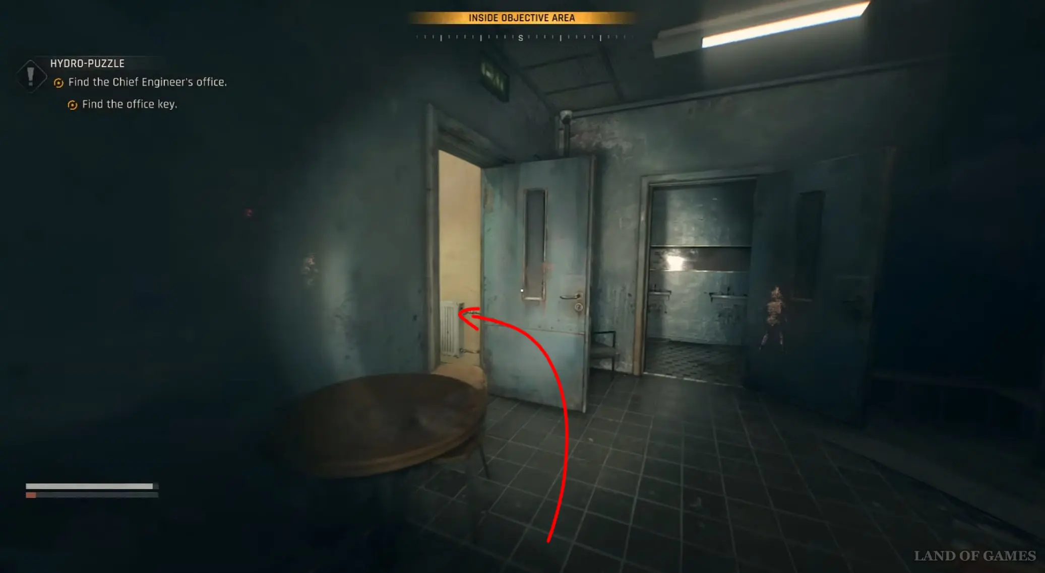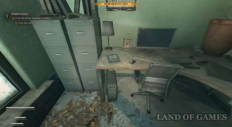 Выйдите из комнаты и теперь пройдите через второй проход справа, и вы обнаружите тут сейф, для открытия которого нужно ввести пароль: 27-1-15 или 27-1-6. Внутри вы обнаружите ценный предмет и ключ главного инженера.