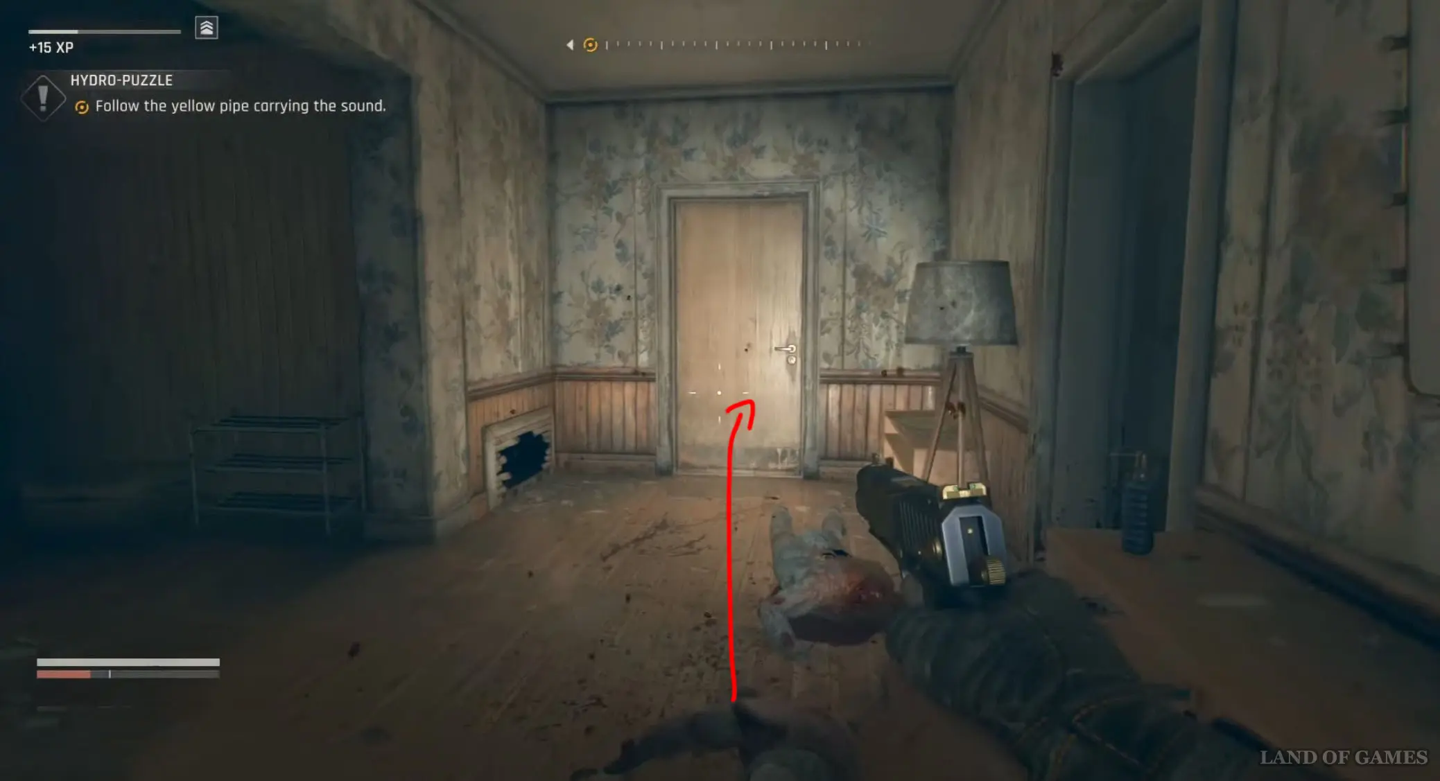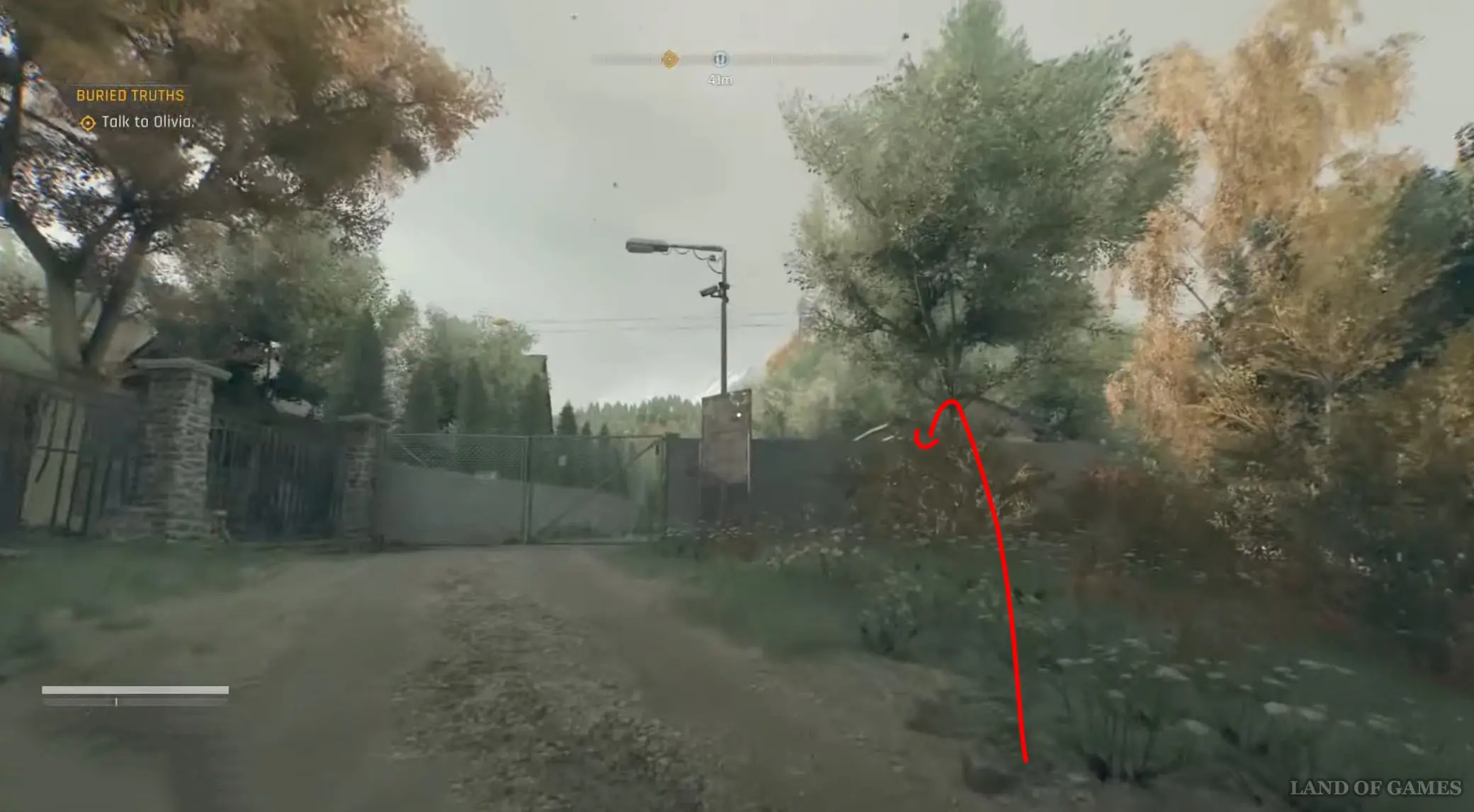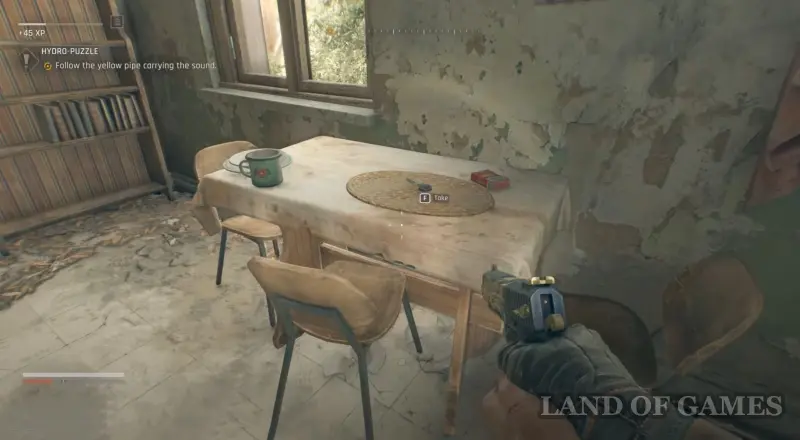 Пройдите в место, продемонстрированное на скриншотах ниже. Здесь вы обнаружите старый домик, в который можно проникнуть через разбитое окошко (нужно сломать баррикаду). Оказавшись внутри, пройдите в ванную и залезьте в отверстие на стене, чтобы попасть в закрытую комнату. Разберитесь с зомби и заберите ключ со столика.