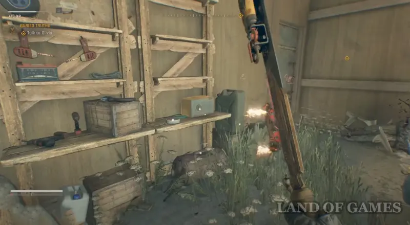 Отправляйтесь к точке, показанной на картинках ниже, а затем идите на север и перелезьте через ограждение. Справа вы увидите старенькую лачугу, на боковой стороне которой можно взломать решетку и войти внутрь здания. Оказавшись внутри, поверните налево, и вы увидите сейф, стоящий на столе. Откройте его, введя код 11-20-30. В нем будет лежать ультрафиолетовая трубка.
