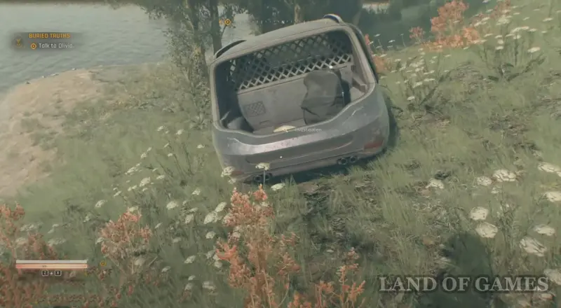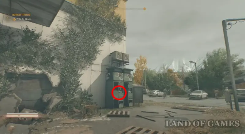 Отправляйтесь к побережью реки, находящемуся к югу от темной зоны «Хозяйственный магазин». Здесь отыщите машину с открытым багажником – изучите лежащий в нем листок, чтобы узнать комбинацию от закрытого шкафчика.