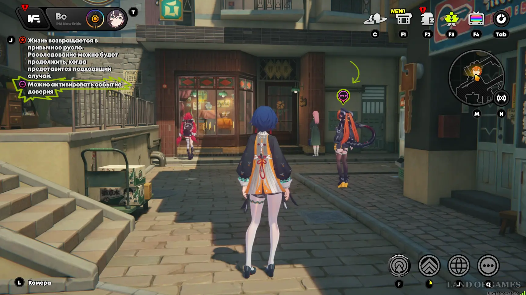 Случайные встречи с Орфеей могут произойти утром, днем или вечером. Чтобы узнать, где находится дуэт, откройте навигационное меню и осмотрите Файлюм, Площадь Люмины или Шестую улицу — значок с общим портретом агентов на карте, в разделе «Информация об области» и справа от названия локации подскажут, доступна ли встреча.