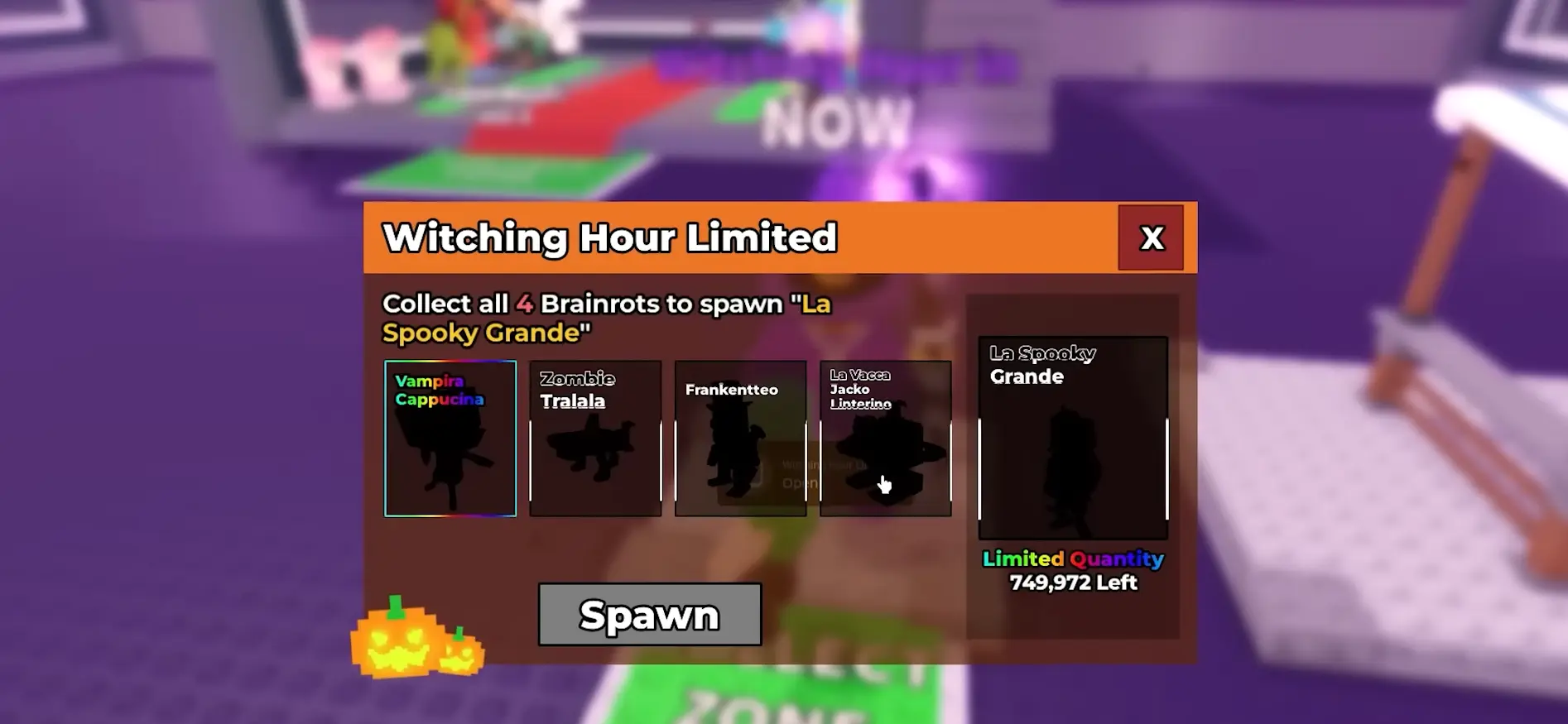 Главная фишка хэллоуинского апдейта – событие Witching Hour (Час ведьм). Оно запускается каждые два часа и позволяет получить La Spooky Grande, редчайшего брейнрота, доступного только во время ивента.