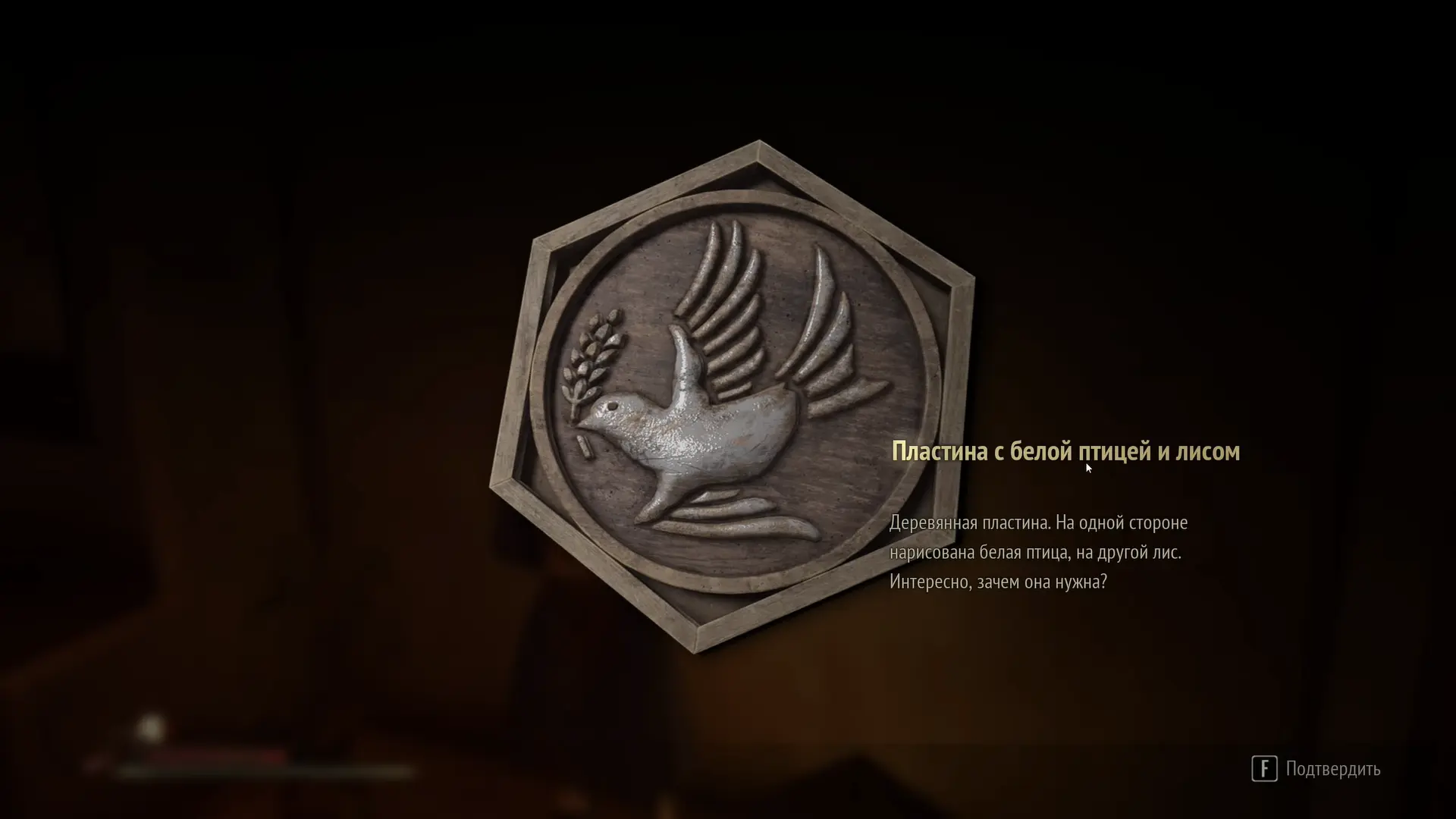 Посмотрите на общее фото и отметьте, кто на нем зачеркнут. Затем переверните все снимки тех, чьи лица зачеркнуты. Когда последняя перевернутая фотография окажется вниз лицом, со стены упадет рамка, а за ней вы найдете Пластину с белой птицей, нужную для решения главной головоломки.