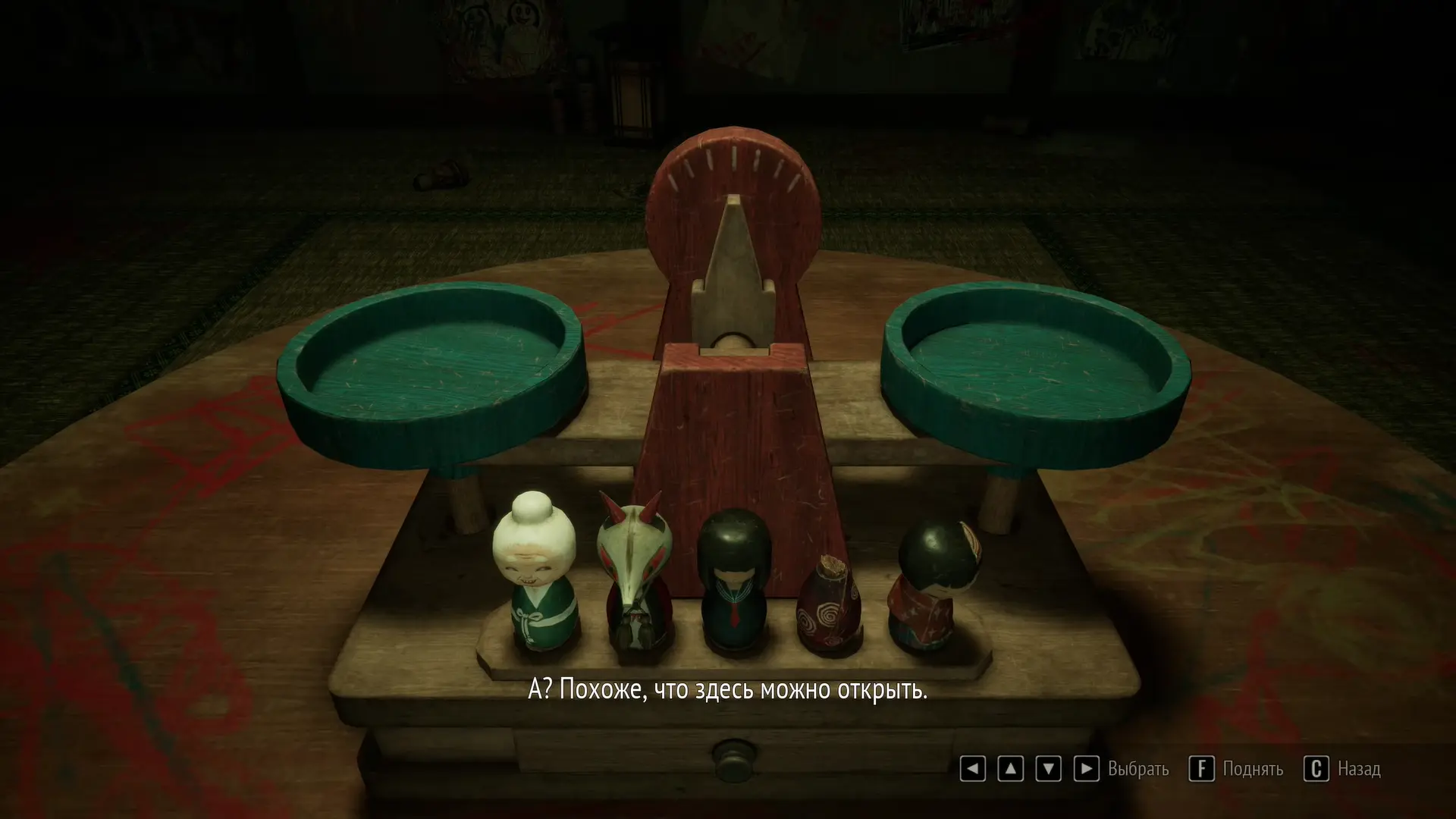 Следующее испытание ждет в западной части Дом семьи Симидзу II, в старой детской комнате, что расположилась в верхней левой части дома, напротив кухни. На столе – знакомая Хинако игрушка с миниатюрными весами и пятью куклами.