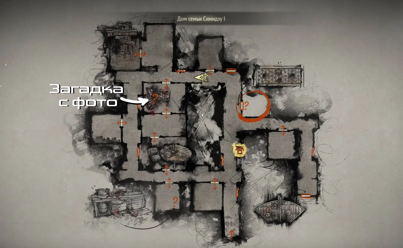 Чтобы решить загадку, нужно найти отсутствующее фото на карте Дом семьи Симидзу II – в правой части дома, в кладовке в конце коридора, если бежать от святилища. Вернувшись обратно в Дом семьи Симидзу I, установите фото на место и можно приступать.