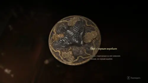 Перед вами большая настенная роспись с множеством лисиц. В мурале есть 9 слотов, в которые можно вставить три найденных ранее эмблемы: Герб с лисьей маской, Герб с белым воробьем и Герб с черным воробьем.