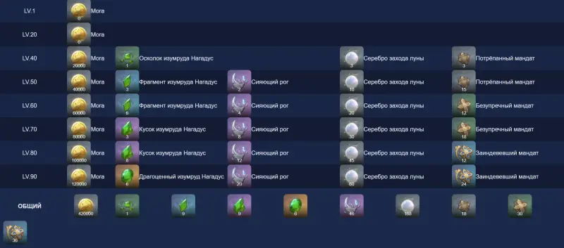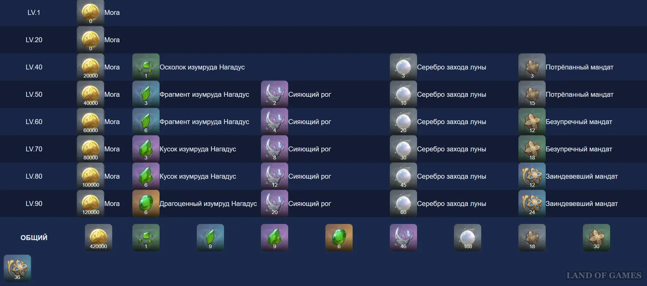 Добыть осколок изумруда Нагадус можно с Дендро гипостазиса, Пернатого плесенника и Стража оазиса Апепа. Он также выпадает с Прожорливого горного короля-юмказавра. Сияющие рога выпадают с Повелителя морозной ночи. Серебро захода луны является местной диковиной Нод-Края. В отдельном гайде мы указали его расположение.