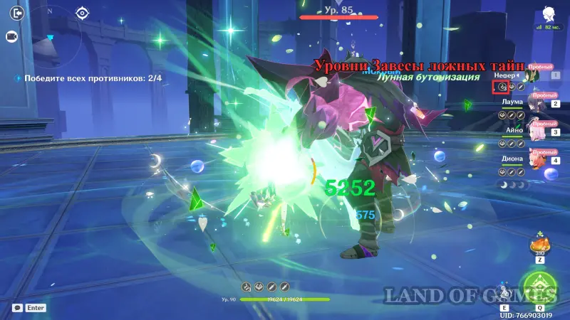 - Активируйте все способности Гидро и Дендро саппортов и саб-ДД, действующих из кармана, чтобы не только дать баффы Нефер, но и заранее начать вызов Лунной бутонизации, дабы накопить хотя бы 1-2 Зеленой росы.