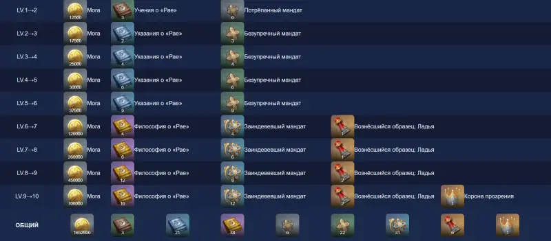 | Уровень | Базовое HP | Базовая атака | Базовая защита | Бонус к критическому урону |