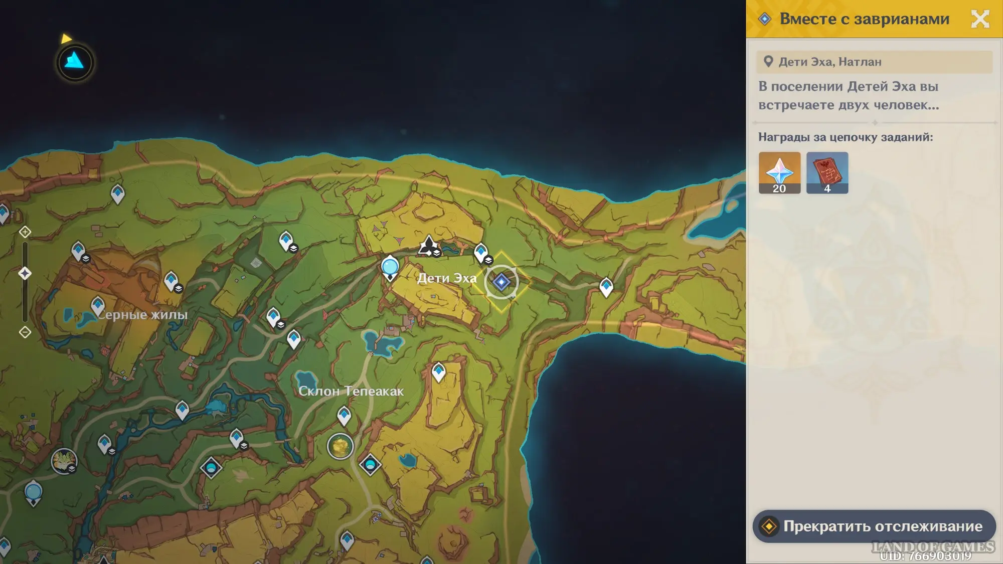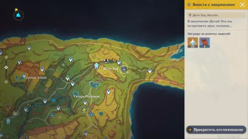Отправляйтесь в поселение Детей Эха, чтобы повстречать там Комину и Квеку – поболтайте с ними. После разговора у вас откроется доступ к первому испытанию события, а квест подойдет к концу. В качестве вознаграждения вы получите 20 примогемов и 4 опыта искателя приключений.