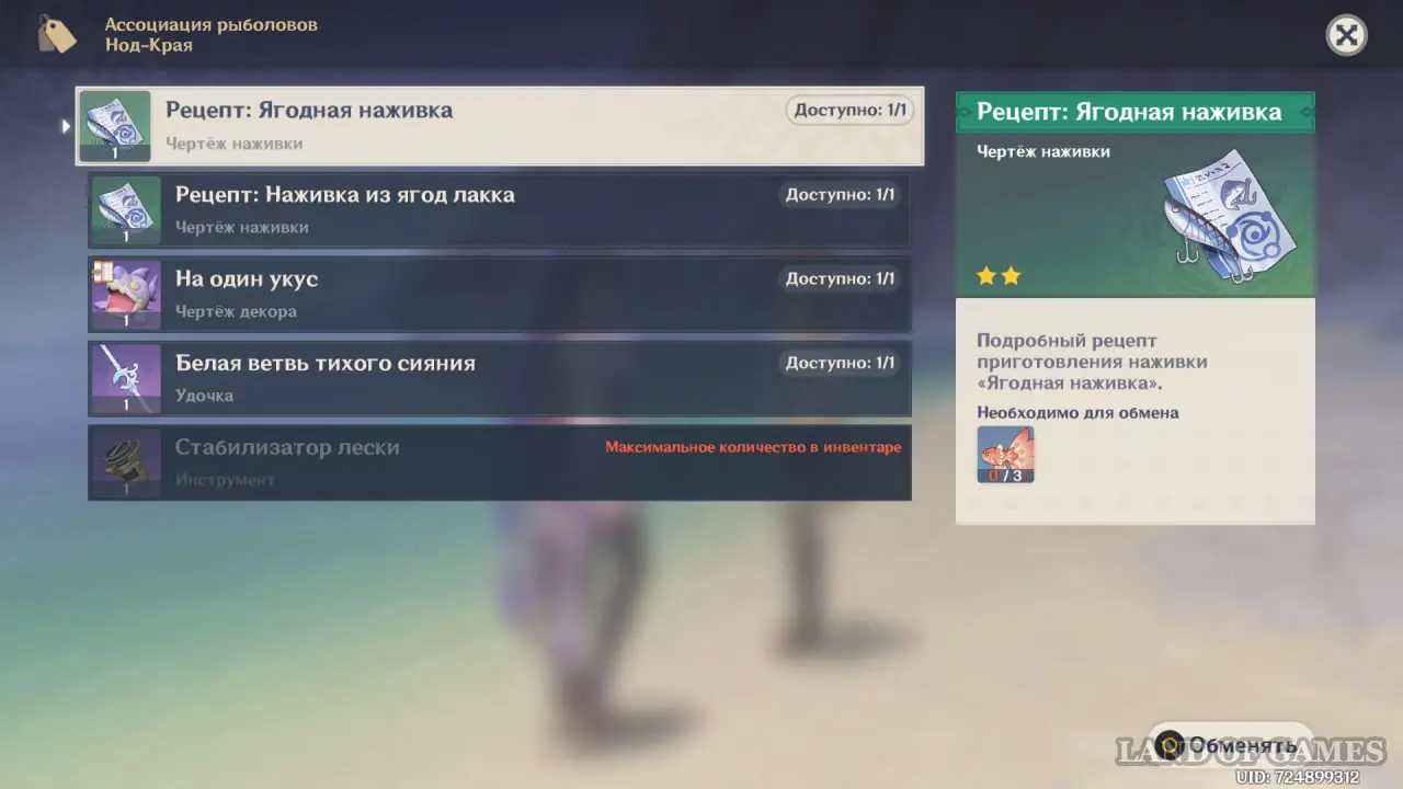 - Стабилизатор лески — универсальный инструмент для удочек, сглаживающий колебания в натяжении лески. Работает и продается во всех регионах, поэтому вы уже могли приобрести его ранее. Цена: 3 оризии.