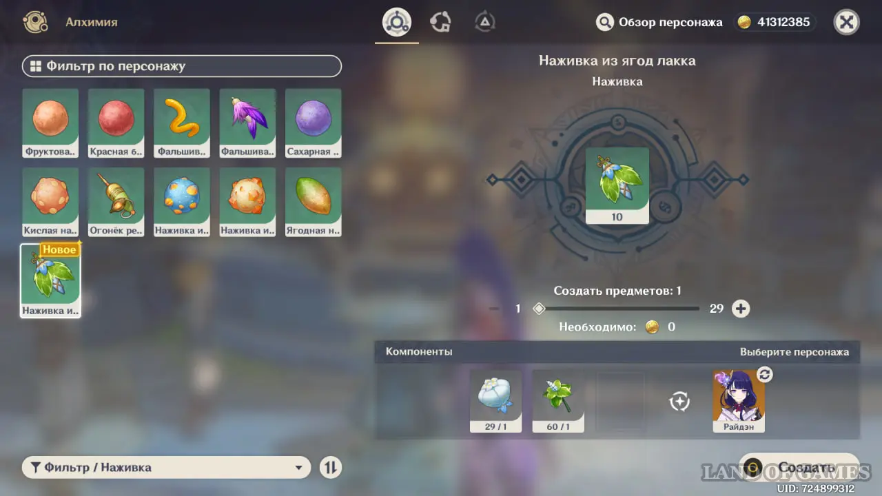 Для крафта 10 наживок вам нужны 1 ягода лакка и 1 мята.