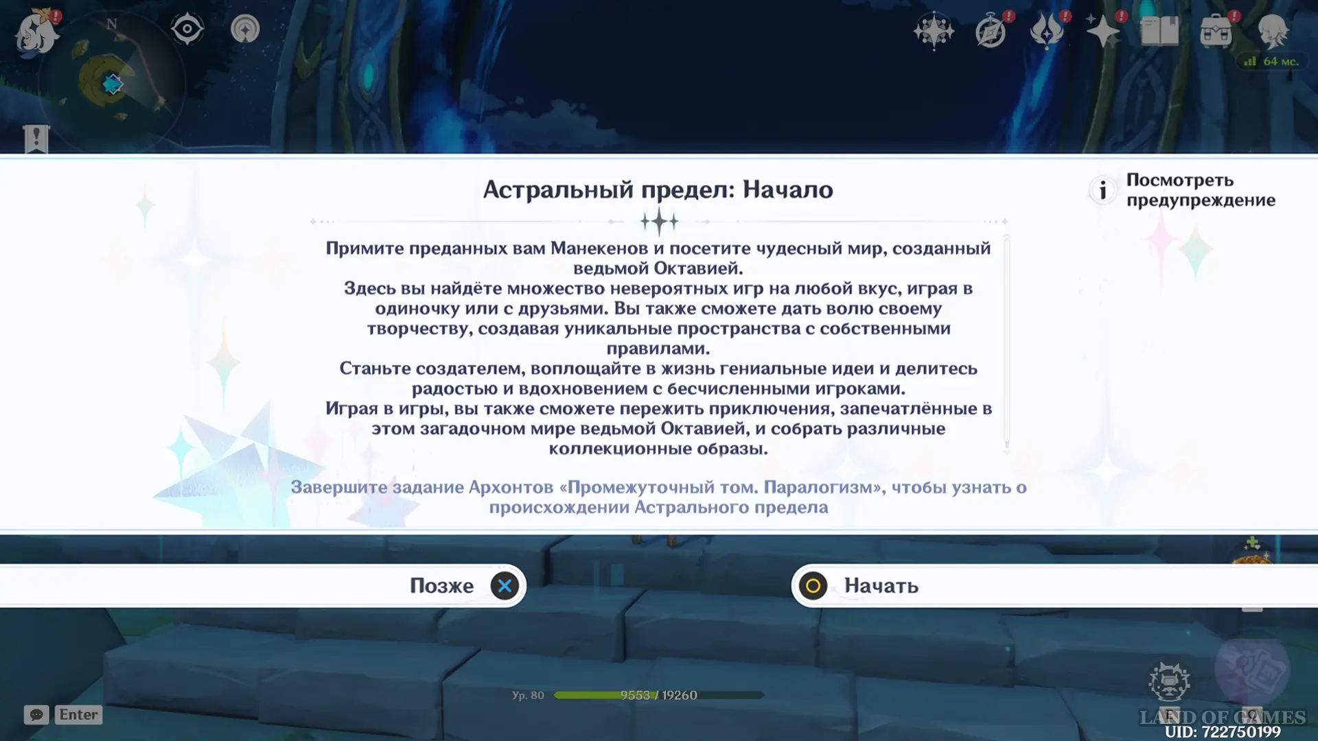 Доступ к новому режиму открылся вместе с релизом патча 6.1 (Луна II), то есть 22 октября 2025 года. Следует заранее подготовить дополнительное место на своем устройстве (около 4 или 5 Гб для ПК). Прежде чем вы сможете попасть в него, придется выполнить парочку условий, а именно: