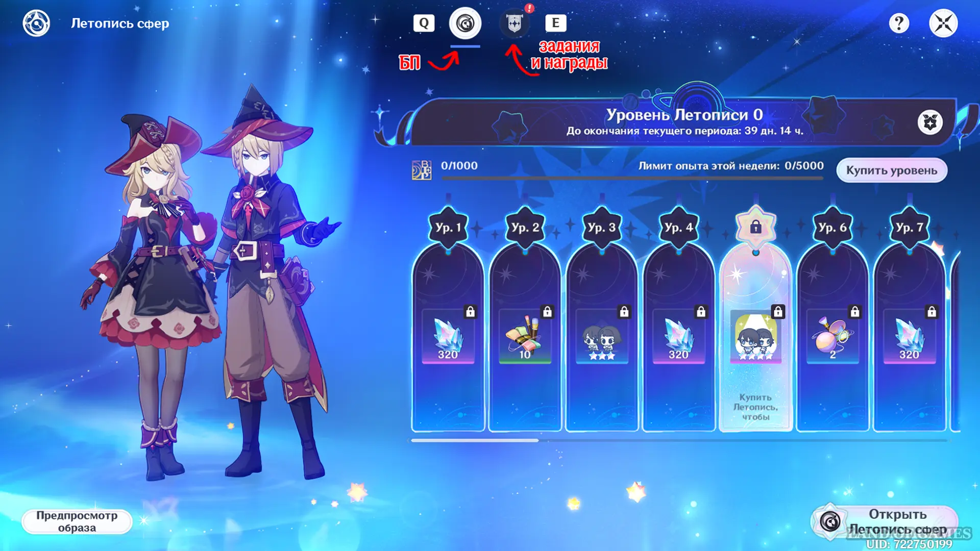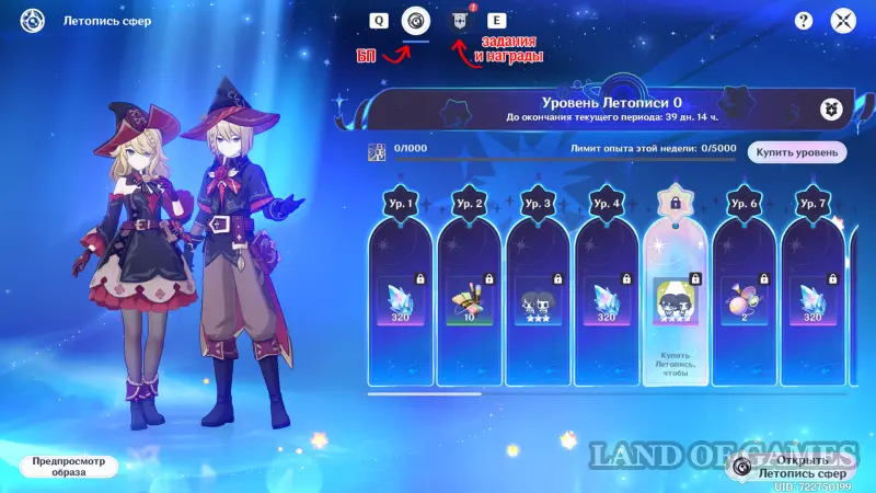 - Летопись сфер – своего рода боевой пропуск, у которого есть платная и бесплатная версии, отличающиеся наградами (в платной наряды, разумеется, будут более красочными и интересными). Вам нужно будет повышать уровень Летописи, участвуя в различных активностях, для получения вознаграждений.