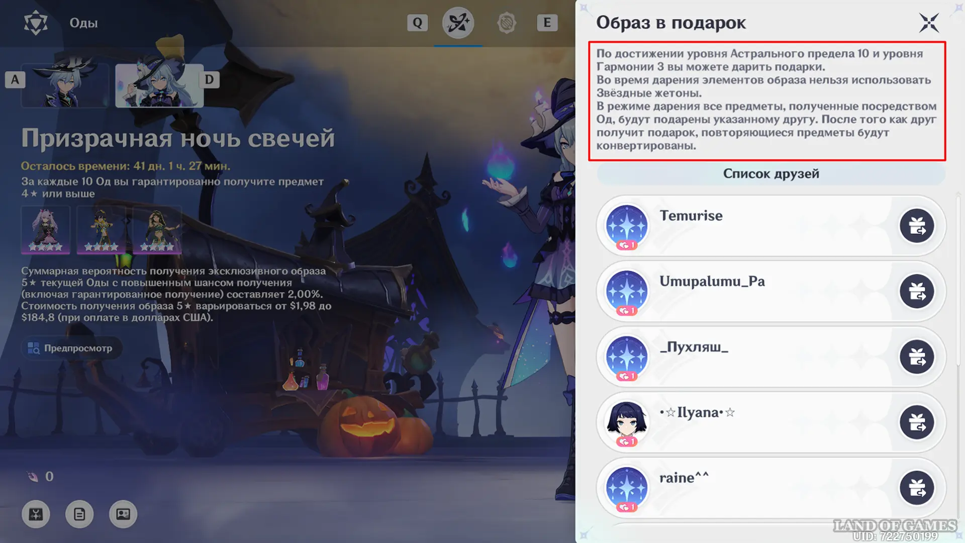 - Дарение – уникальная система подарков, которую можно открыть на 10 уровне Астрального предела (и 3-м lvl Гармонии). С помощью нее вы сможете дарить своим друзьям с высоким показателем Гармонии любые вещи, а также получать от них ответные подарки.
