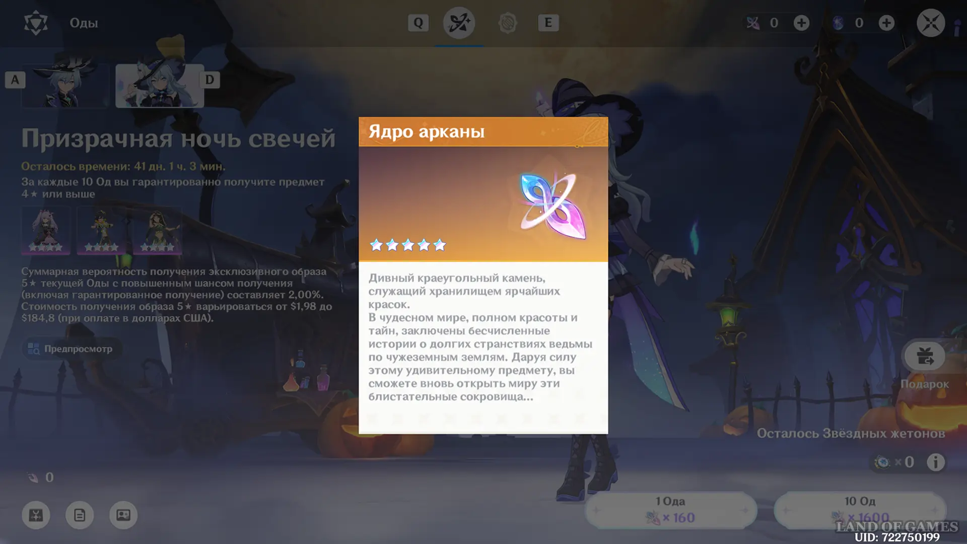 - Ядра арканы – это аналог ивентовых круток для баннеров Оды. Их можно получить через обмен или приобрести в торговой лавке за сияющие и гравированные осколки — ресы, выдаваемые при выпадении копий ивентовых скинов. Для F2P игроков этот ресурс пока что не доступен;