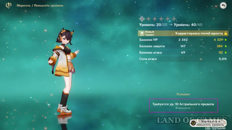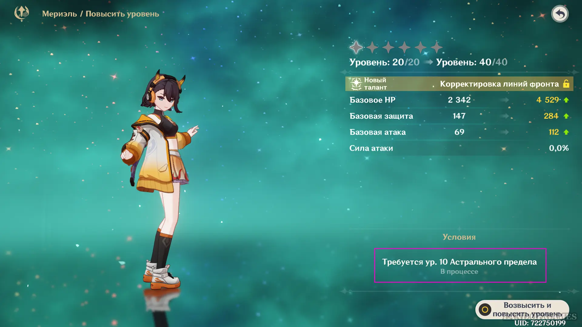 Кастомному герою также можно прокачивать lvl, но эта функция станет доступна после поднятия 10-го уровня Астрального предела (таланты при этом будут прокачиваться равномерно и автоматически).