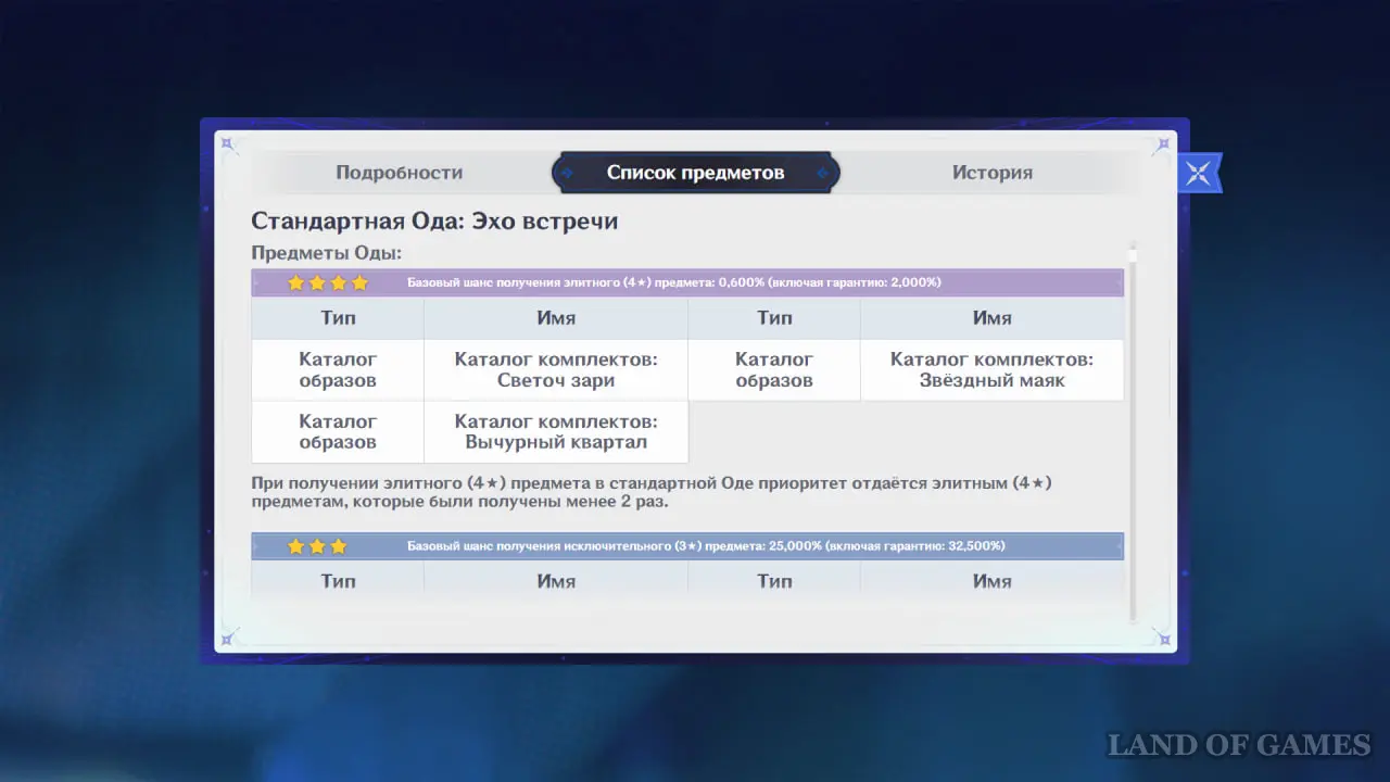 Как и в обычных игровых баннерах, в Астральном пределе есть своя система гаранта, то есть за определенное количество круток вы точно получите 4- или 5-звездочный наряд.