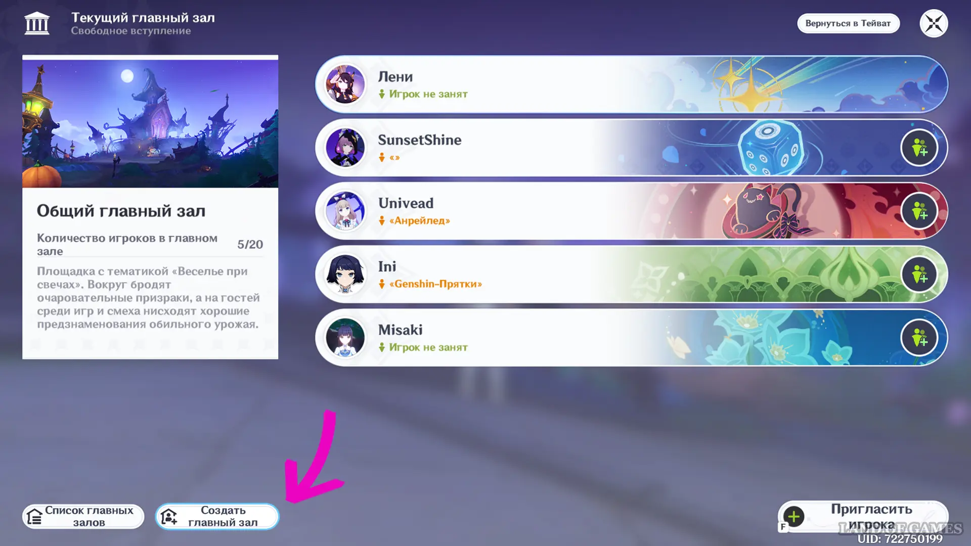 Откройте список юзеров в Главном зале (для ПК на «L») или иконку человечка с флагом по правой стороне экрана. Приглашайте желающих через чат или напрямую по UID — после принятия приглашения можно определиться с выбором предела и принять в нем участие, закрыв тем самым задачу.