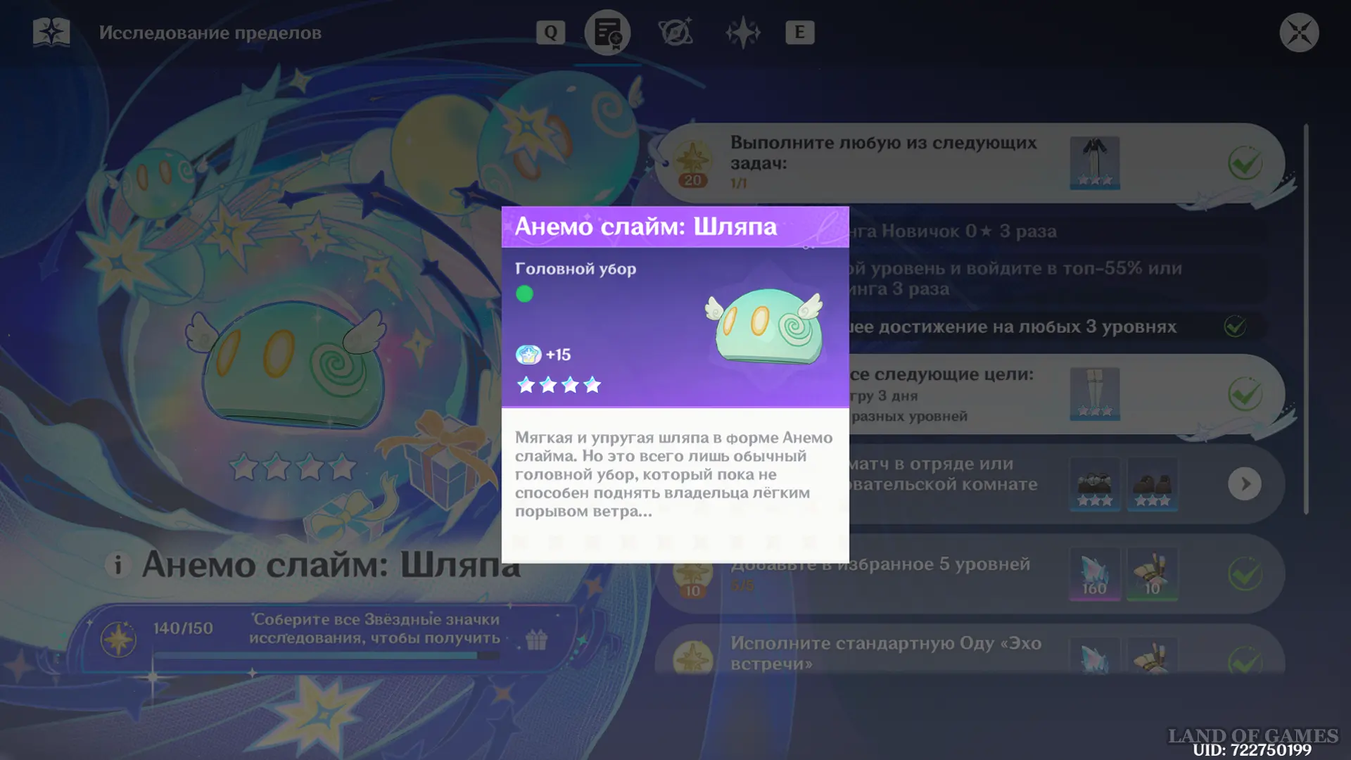 - Головной убор «Анемо-слайм: Шляпа» — 1 шт. (4★);