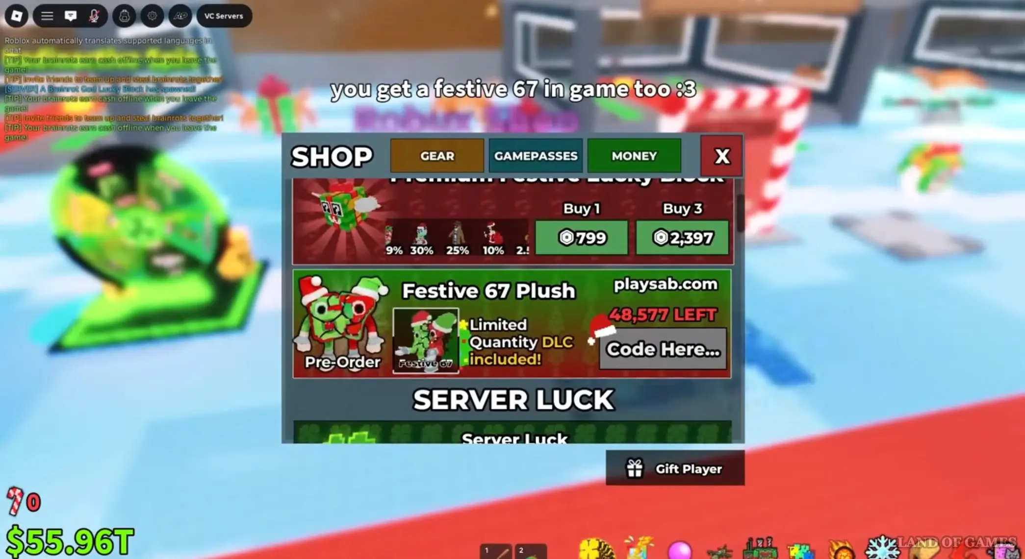 В сети начала появляться информация о том, что разработчики якобы начали бесплатно раздавать ультраредкого брейнрота Праздничный 67 (Festive 67), используя некий секретный промокод. Однако это неправда! Заполучить соответствующий код можно лишь путем покупки плюшевой игрушки на сайте playsab.com и никак иначе. Сейчас она стоит $29.99 и в России ее, скорее всего, приобрести нельзя.