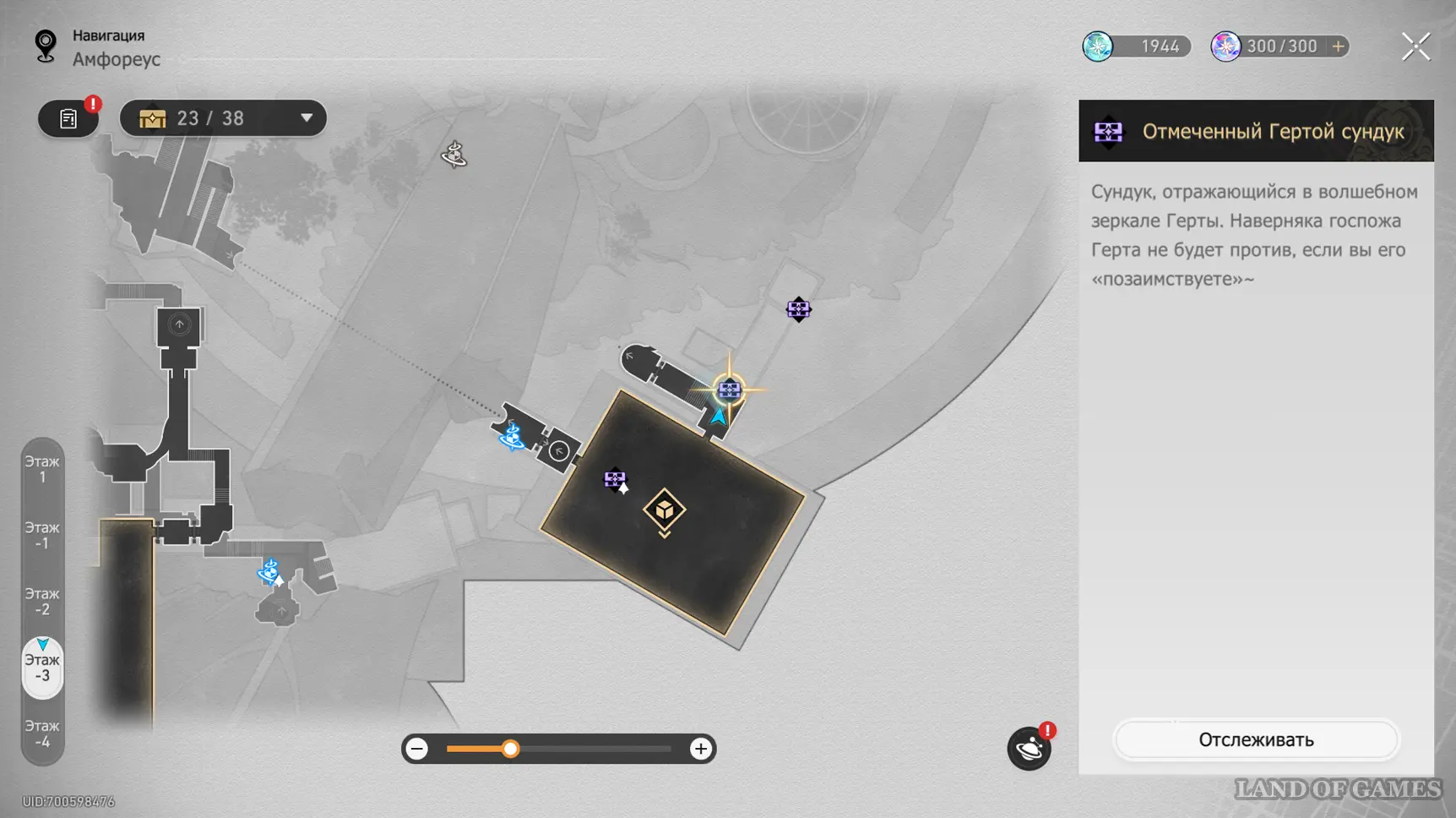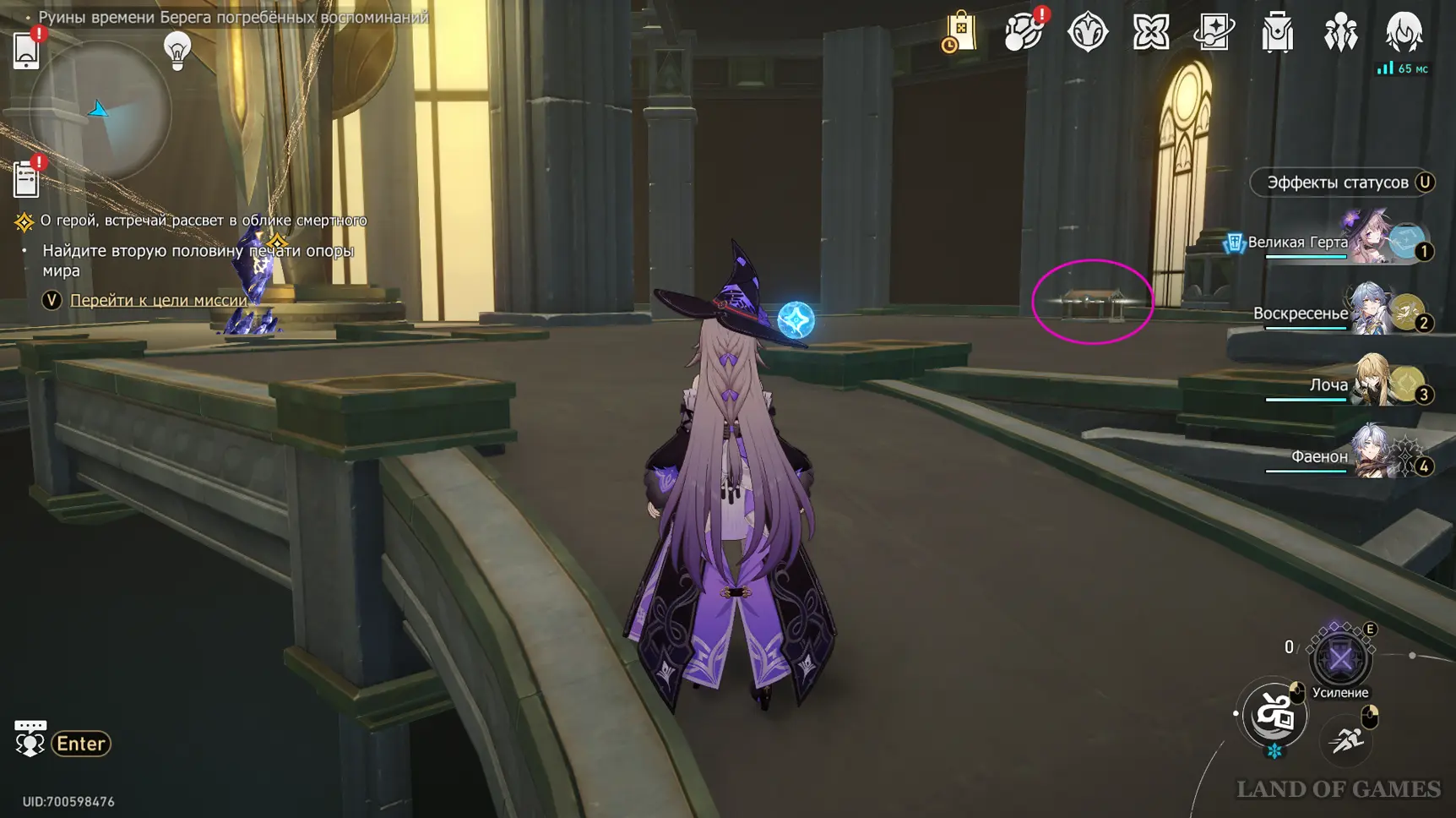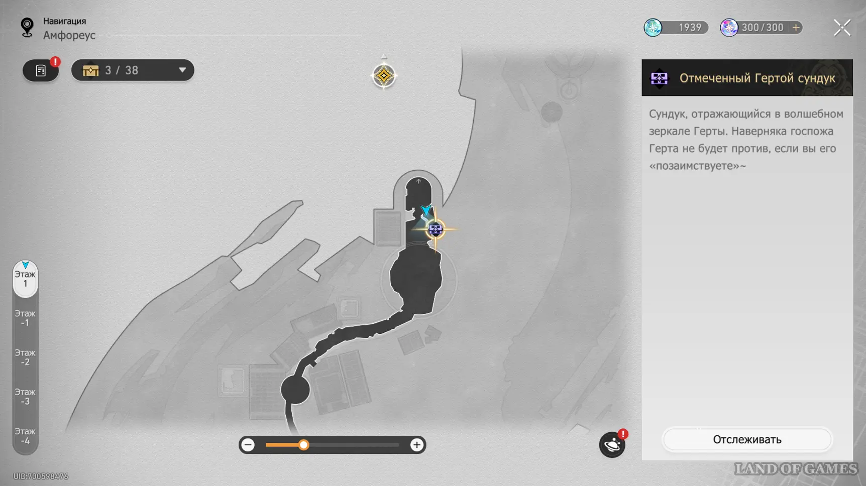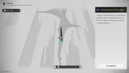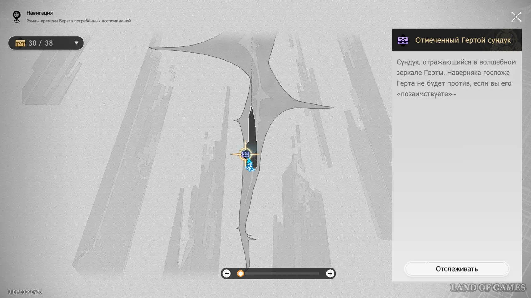 Сундучок 30 стоит в углублении на лестнице перед Статуей опоры мира, на севере -4 этажа.