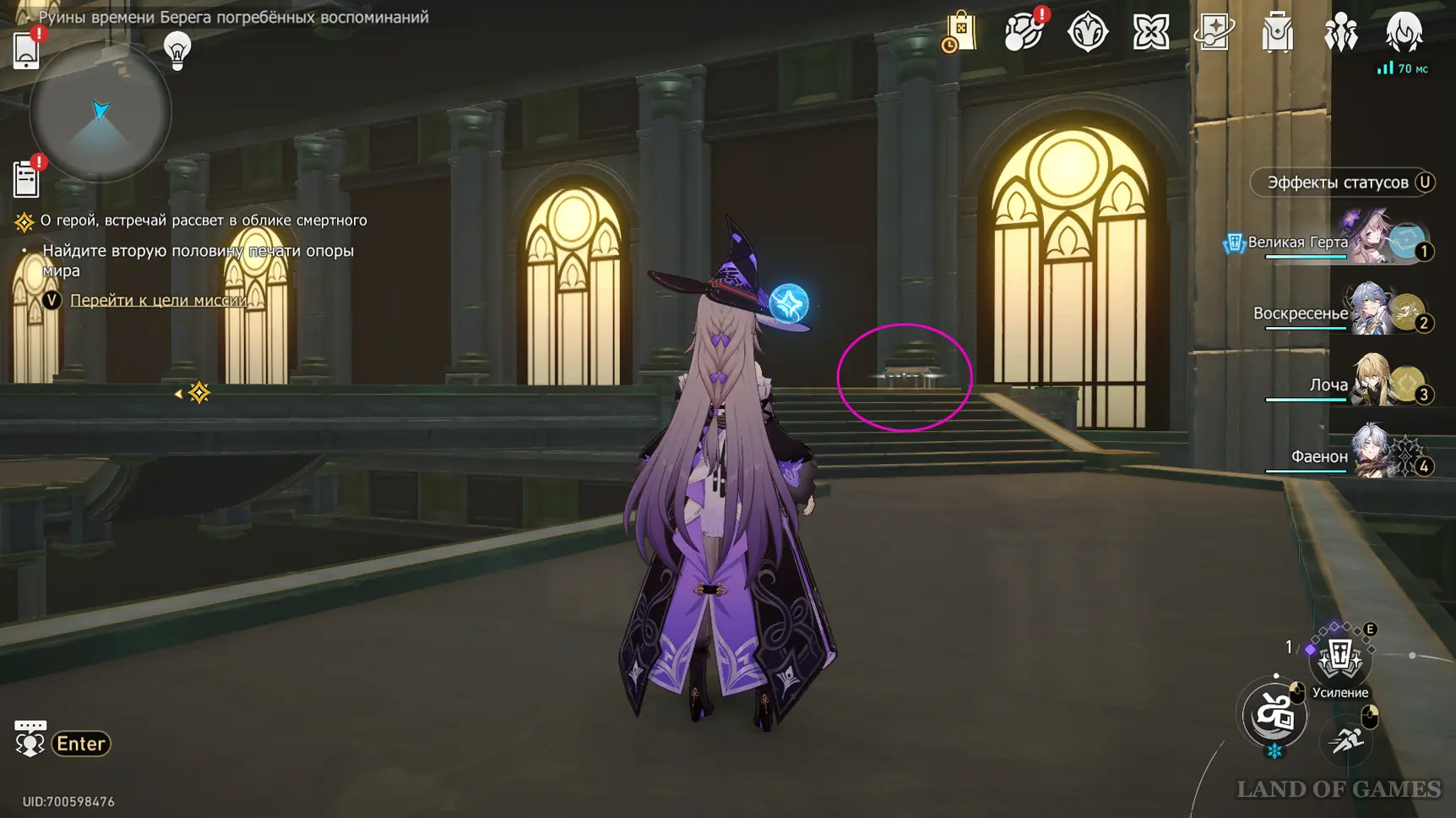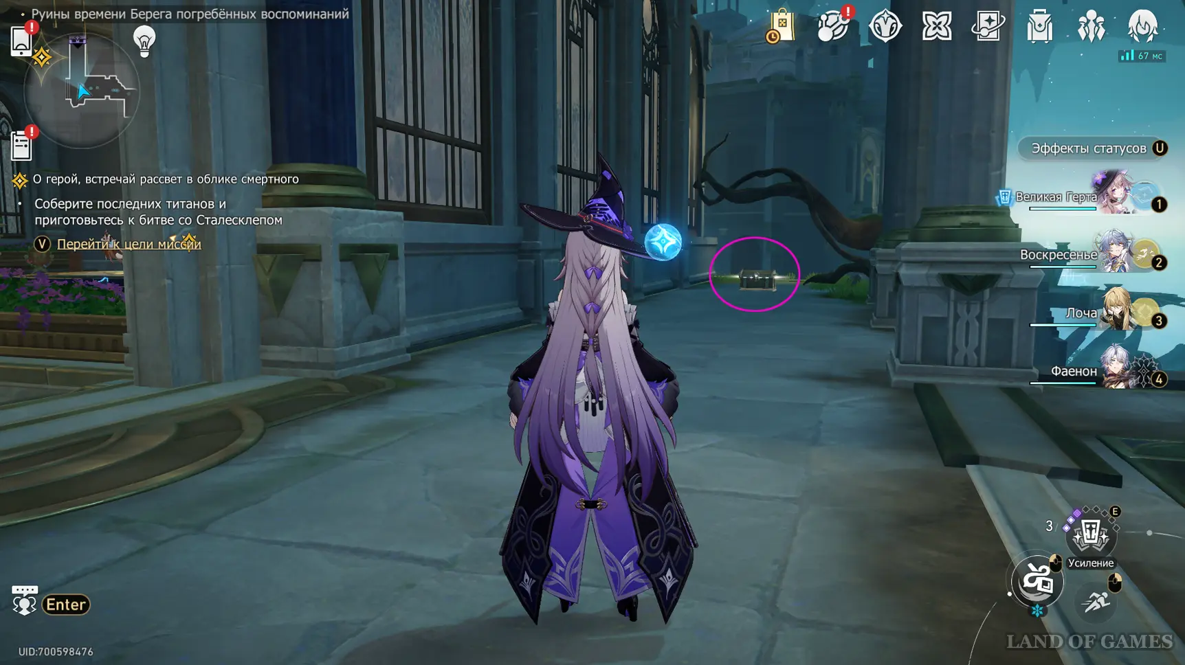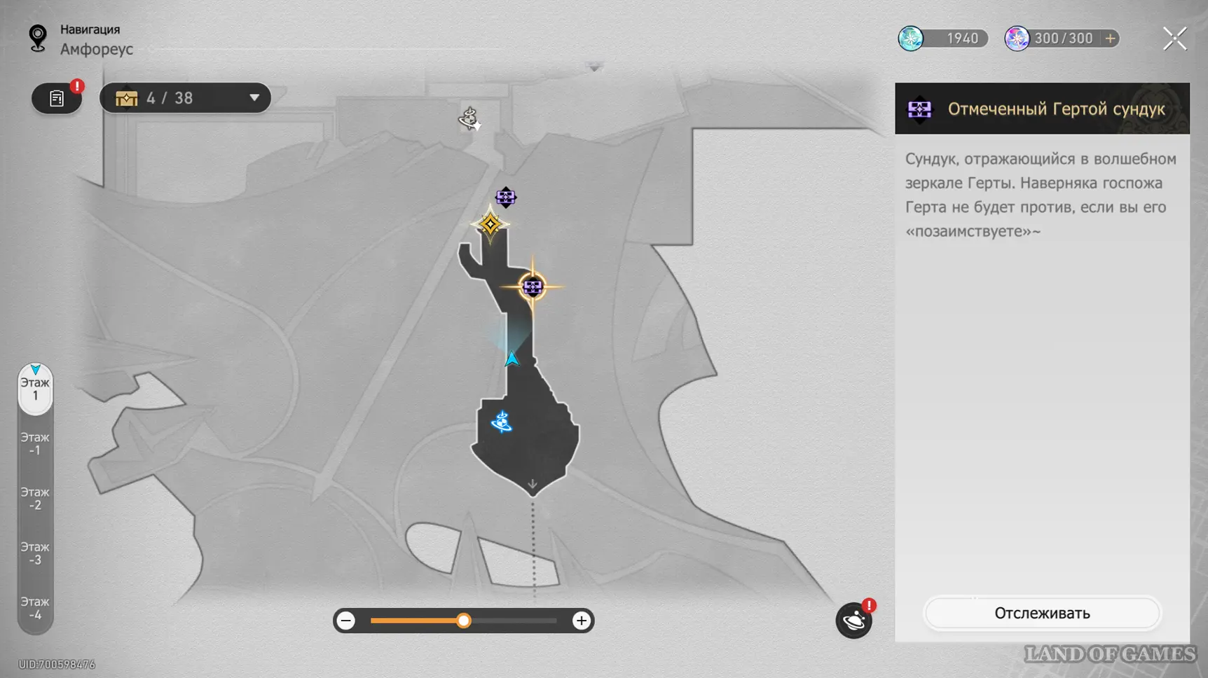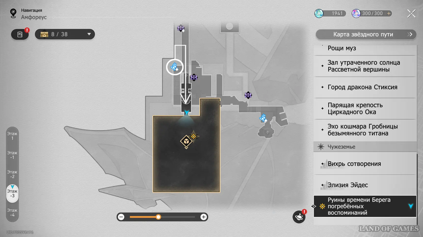 Сундучок 30 стоит в углублении на лестнице перед Статуей опоры мира, на севере -4 этажа.