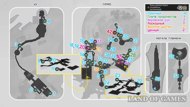 Эта локация состоит из нескольких уровней, в которых можно отыскать 42 обычных, ценных и роскошных сундуков. На карте ниже можно будет посмотреть их примерное расположение. Далее мы в деталях расскажем вам, как до них добраться.