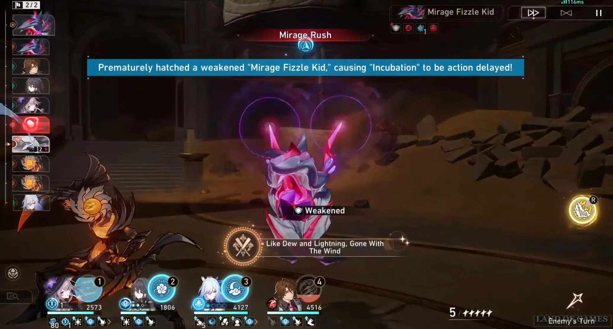 Вам нужно будет как можно скорее пробить ее уязвимость, чтобы элитный враг не успел вызвать Дитя миража. Для этого сосредоточьте на нем все свое внимание. Возьмите также в команду персонажей, повышающих пробитие или специализирующихся на нем. К примеру, лучшим вариантом станет отряд Светлячка.