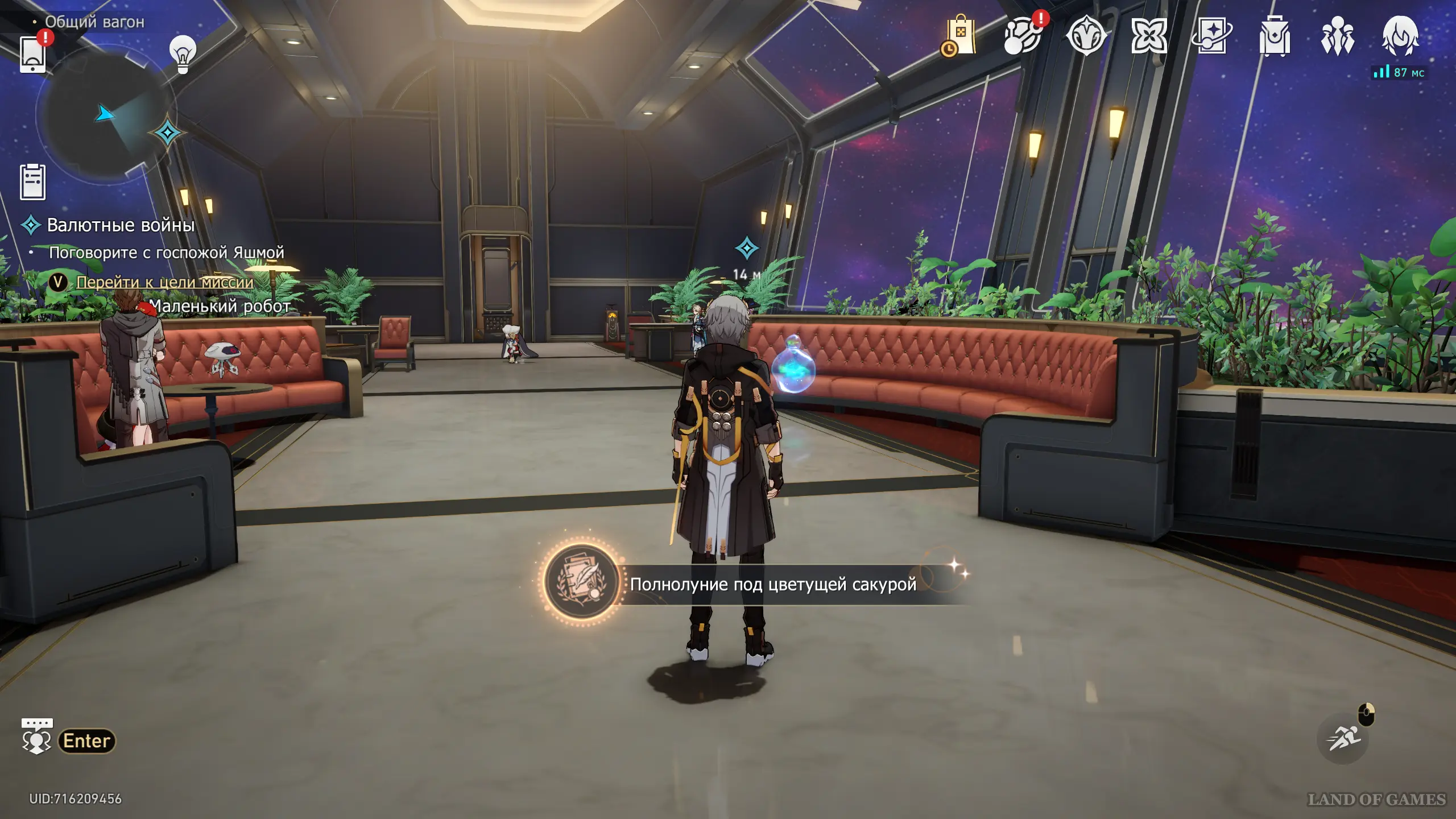 Полнолуние под цветущей сакурой – Кто еще остается за пределами истории? После прохождения квестовой цепочки «Стать вчерашним завтра» отправляйтесь в Общий вагон Звездного экспресса и взаимодействуйте с находящимся здесь пузырем памяти. Посмотрите сценку с Бутхиллом и Искоркой, намекающую на будущий сюжет.