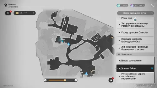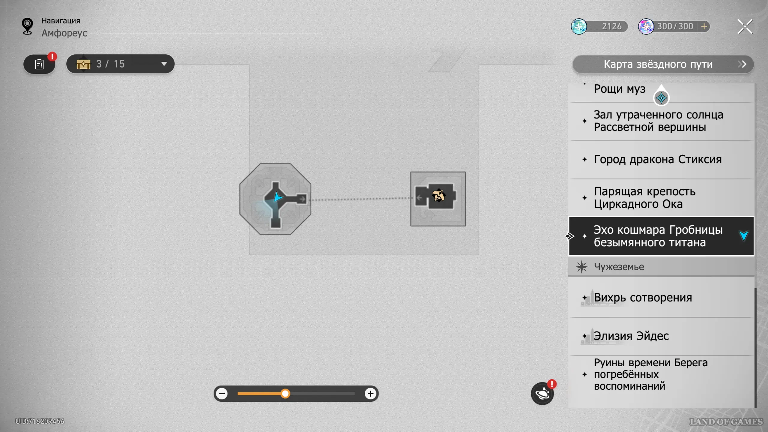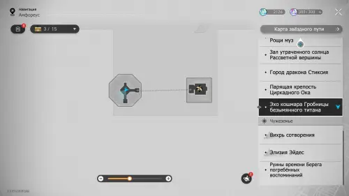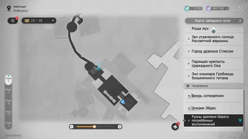 Теория формообразования врат – Используйте устройство управления тайной тропы в Эхе кошмара Гробницы безымянного титана и измените логику работы всех тайных троп Янус на Амфореусе. Отправляйтесь в указанную локацию и доберитесь до юго-западной платформы с помощью Омелы (включите автопилот). Затем воспользуйтесь тайной тропой и переместитесь на площадку еще выше и западнее.