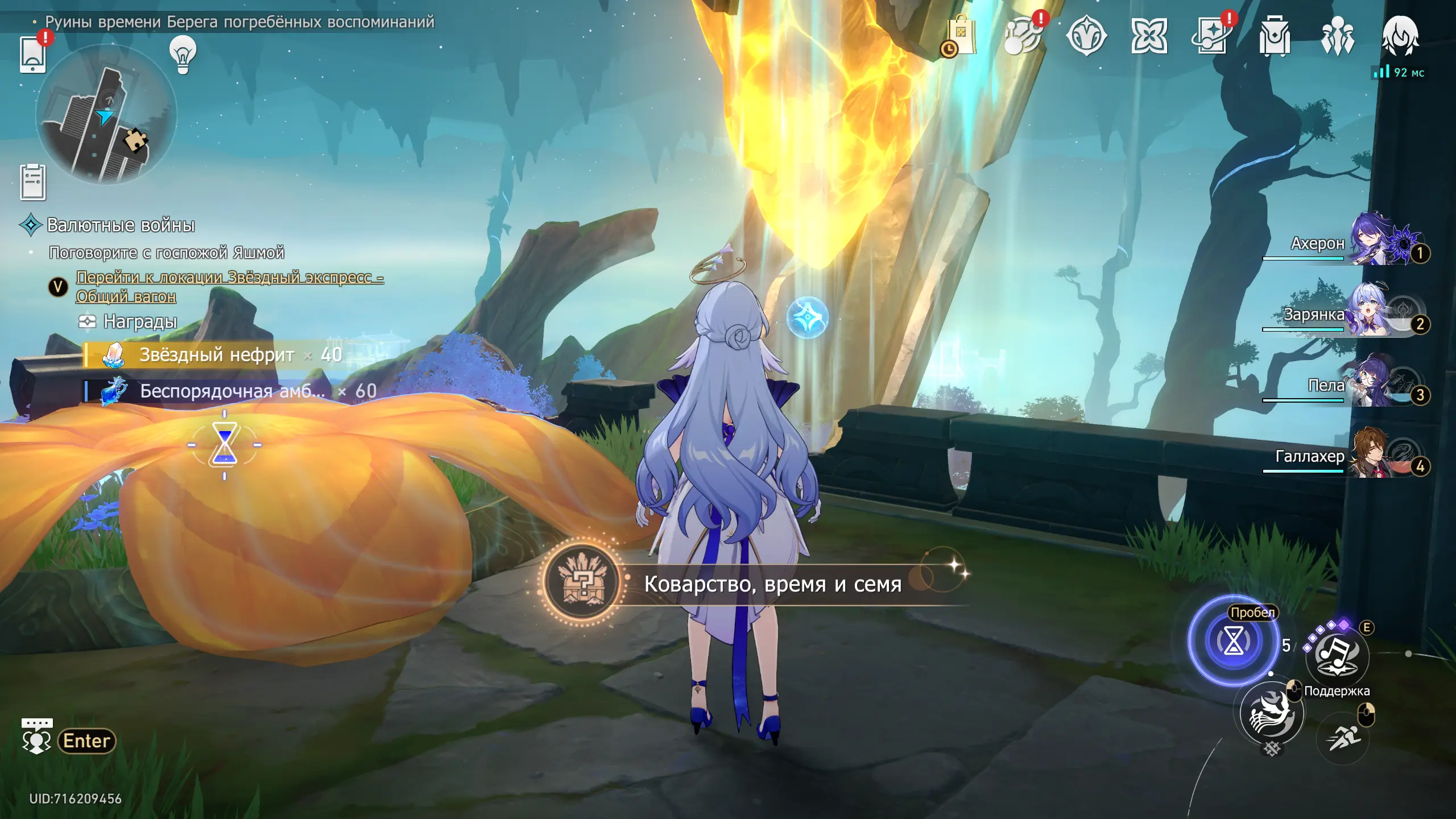 И затем воспоминания стали рябью – Сделайте так, чтобы после усиленной базовой атаки Первопроходца (Память) Кирена выполнила умение Танец цветов и стрел 2 раза в одном бою. После завершения сюжета Амфореуса у ГГ (Памяти) откроется новая способность Неоконченный эпилог. Возьмите его в отряд с Киреной и во время сражения используйте ульту Кирены и баффните Первопроходца, а затем дважды примените его сверхспособность и усиленную базовую атаку, чтобы Кирена автоматически применяла удар Танец цветов и стрел. В итоге вы откроете данное достижение.