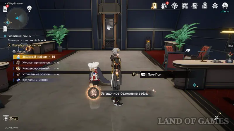 Загадочное безмолвие звезд – Просмотрите записи общения между различными силами вселенной и экипажем Звездного экспресса после битвы. Возвратитесь в Общий вагон и просмотрите 4 пузыря памяти (тот, что связан с Искоркой тоже учитывается), которые начнут появляться здесь после финального сражения за Амфореус.