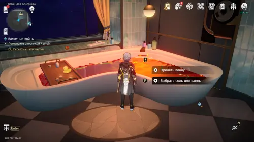 Купание в золотой крови – Используйте златиусную соль во время принятия ванны. Пройдите в свою комнату на Звездном экспрессе (вход находится в Вагоне для вечеринок), а затем пройдите в ванную, подойдите к воде, выберите златиусную соль (вы сможете получить ее при открытии ачивки Древнейшая притча), а потом примите ванну.