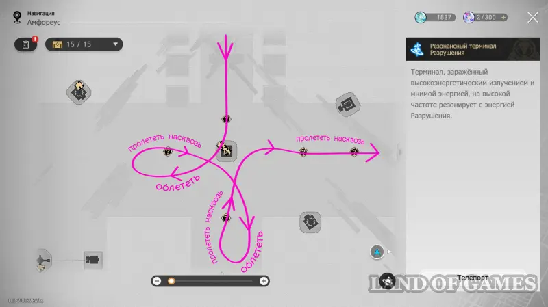 Итак, ключевой этап открытия ачивки — это полет на корабле по некоему маршруту, похожему на серп Оронис. Первым делом переместитесь в Заброшенную матрицу энтропии на севере карты, призовите «Омелу» и активируйте режим полета.