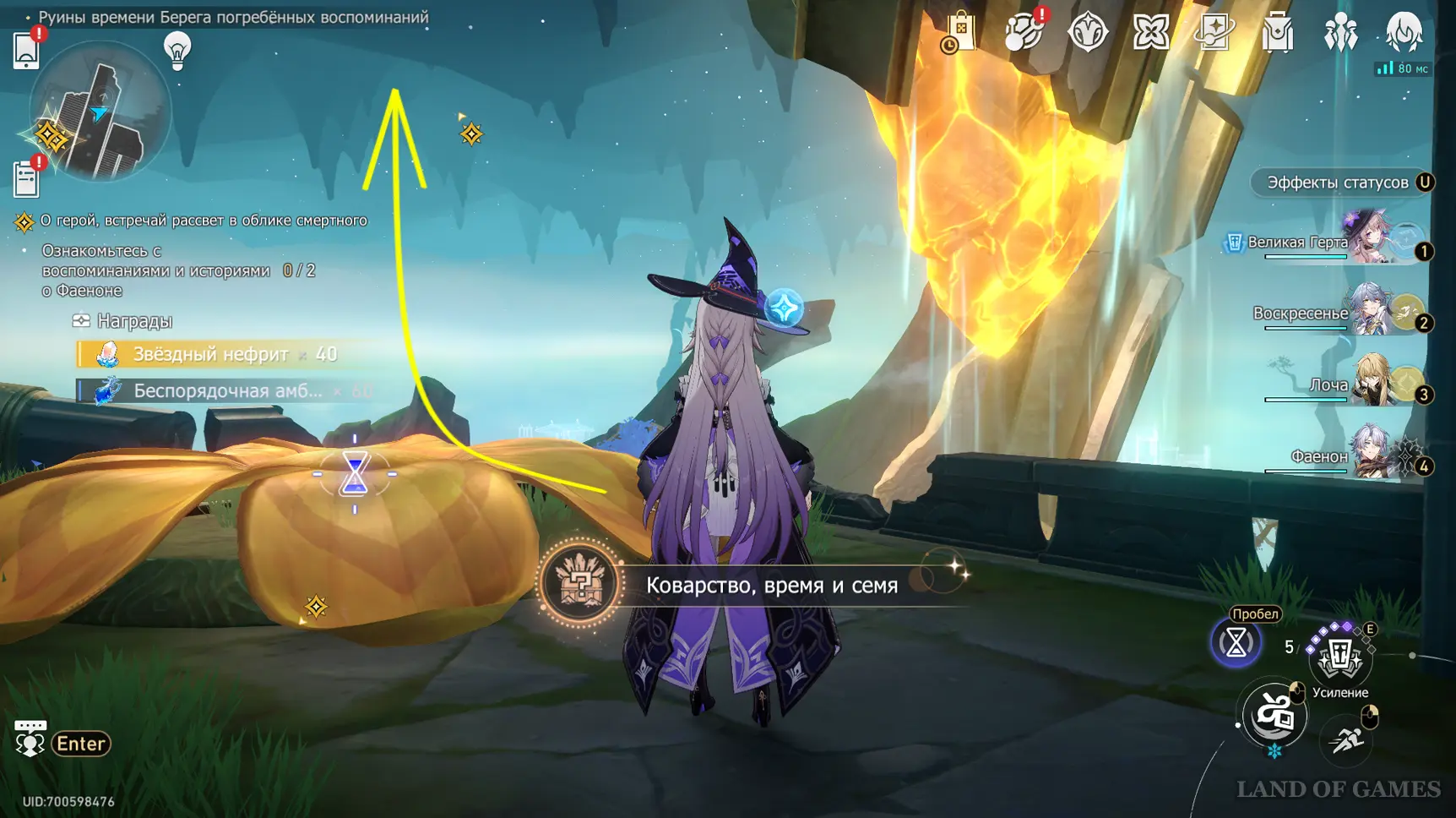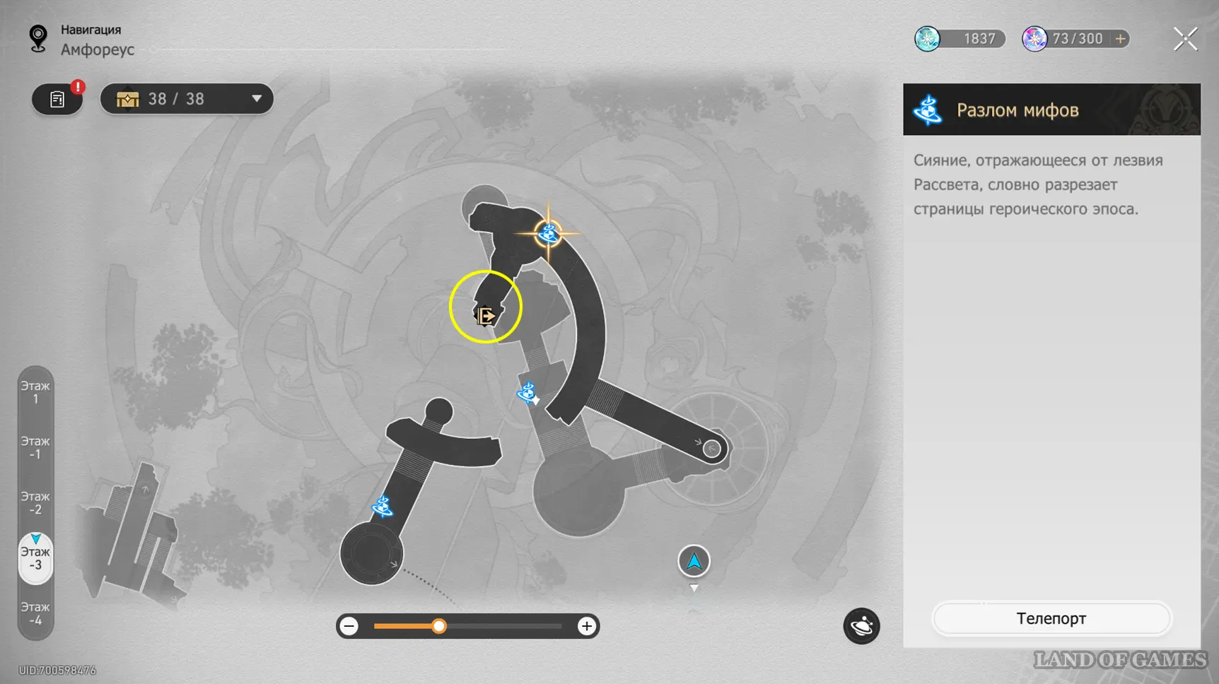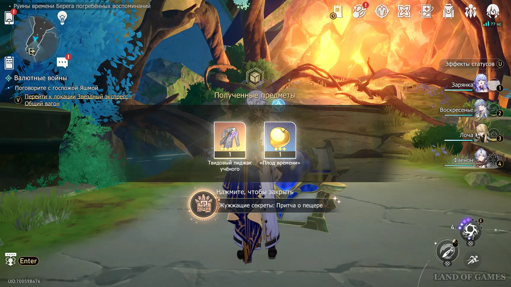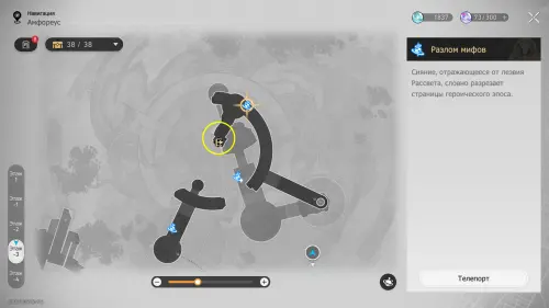 Завершите путешествие в Разломе мифов (−3 этаж, северный якорь) — там, перед мерцающим янтарным проходом, будет ждать роскошный ларец. Откройте его, чтобы сразу получить достижения и щедрые трофеи: 30 нефритов, 300 кредитов, реликвию (тело) из сета «Затерянный в знаниях ученый», 60 Беспорядочной амброзии и редкий предмет «Плод времени».