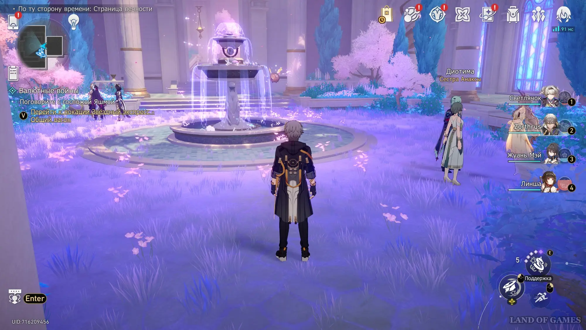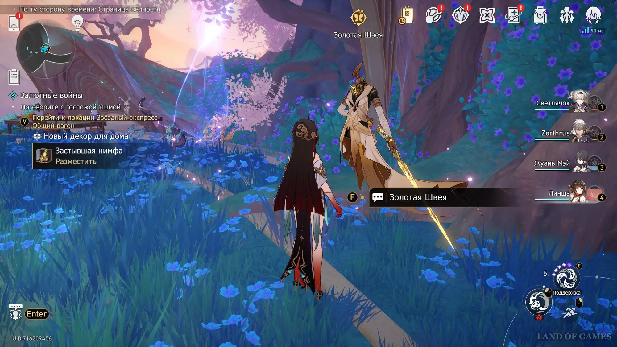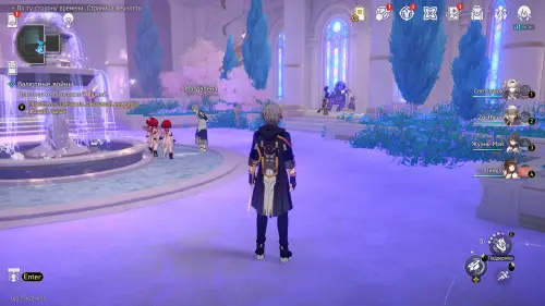 Ее можно отыскать рядом с якорем «Залитый солнцем сад» – она стоит справа от фонтана. При разговоре с ней выберите нужный вопрос, чтобы получить от нее Застывшую нимфу.