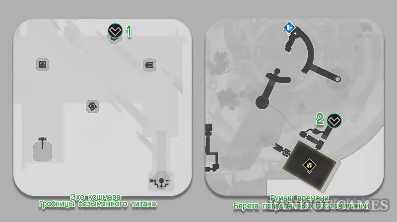 - Руины времени — 1 плита (северо-восток, -3 этаж);