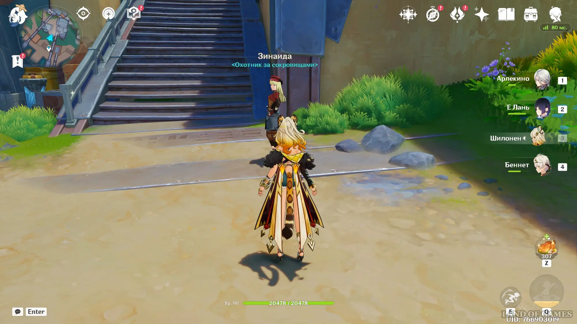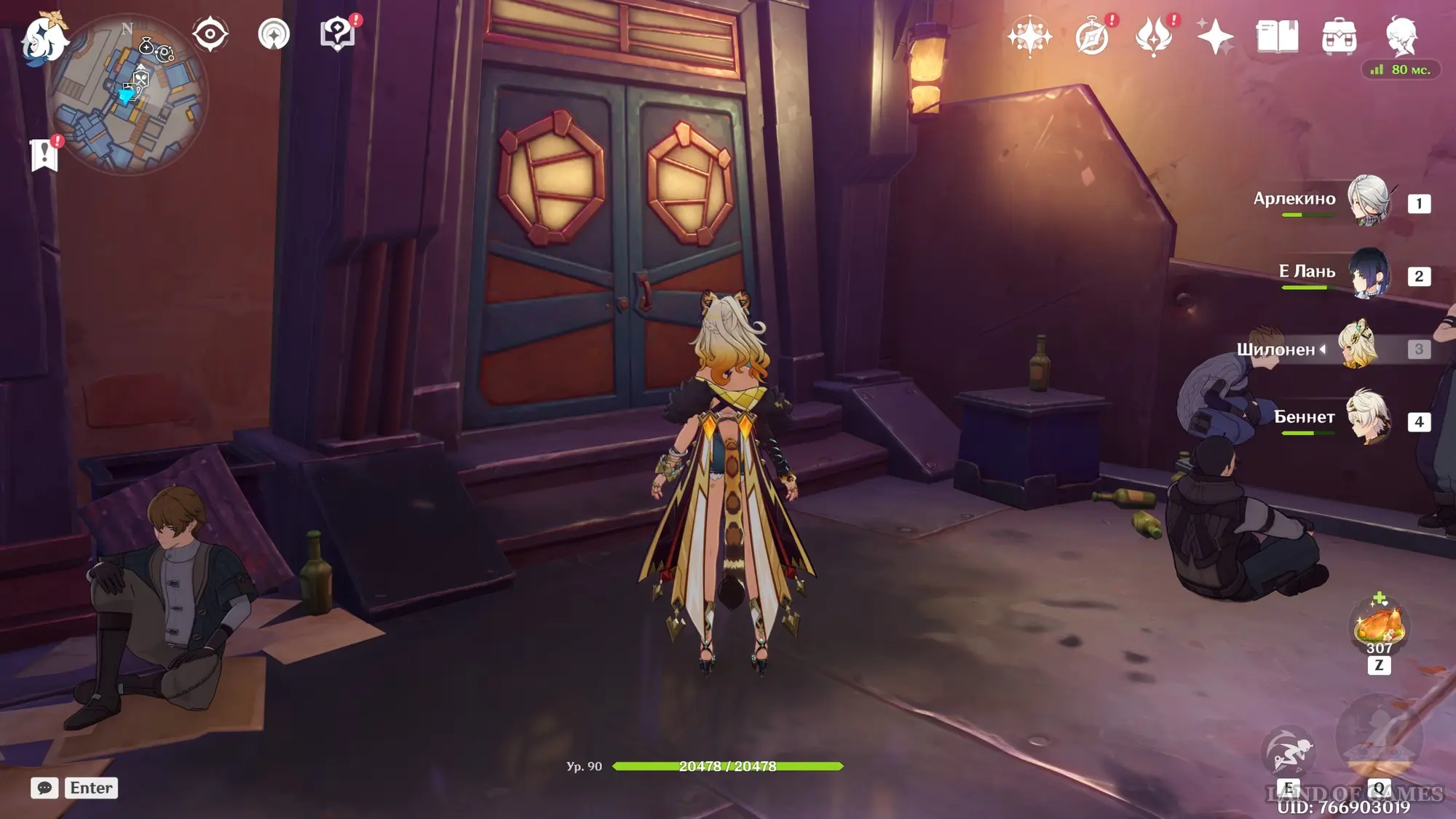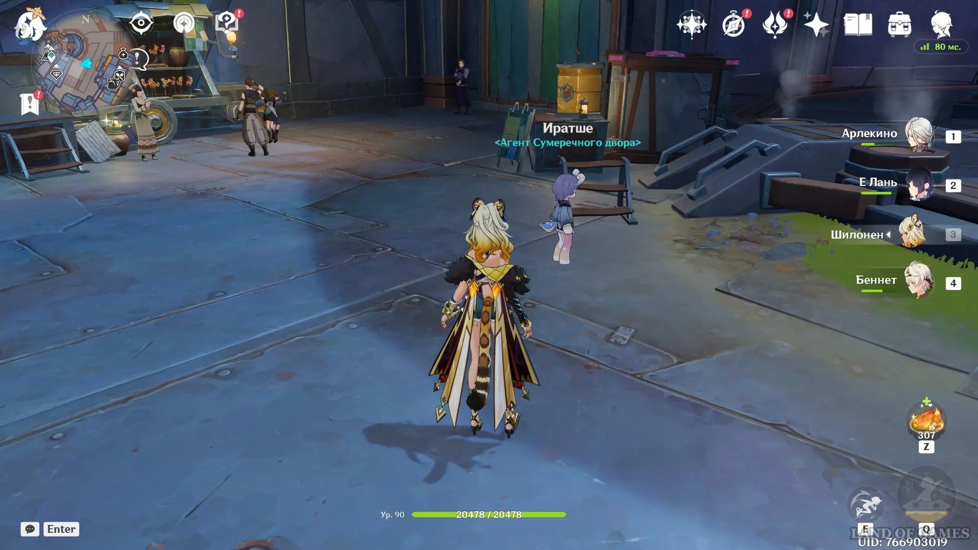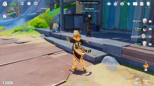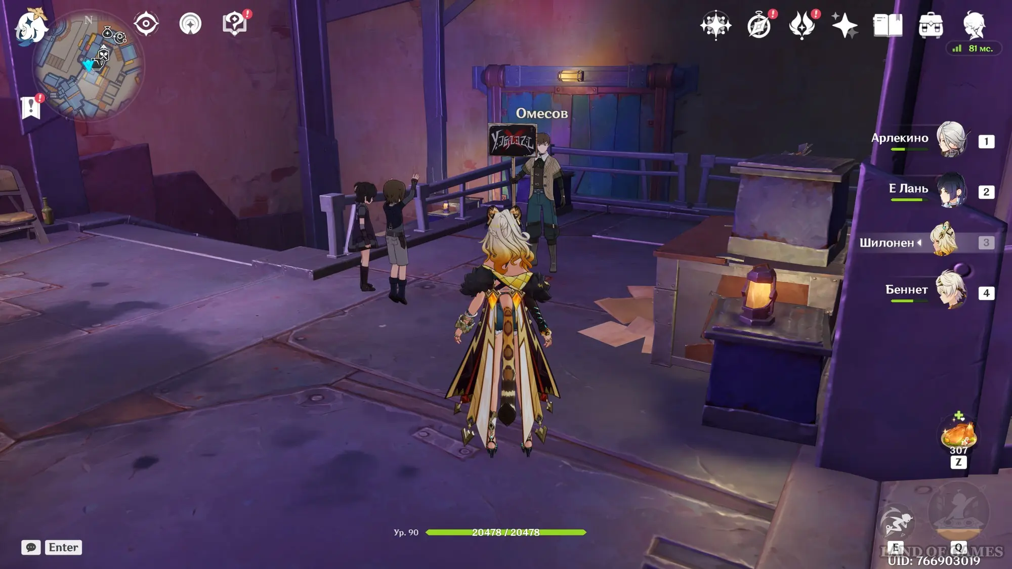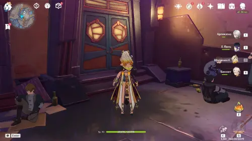 От мелюзины спуститесь вниз по небольшому туннелю, ведущему к бару «Флагман». Прямо напротив двери в заведение вы увидите бывшего Фатуи Омесова, которого исключили из группировки за воровство.